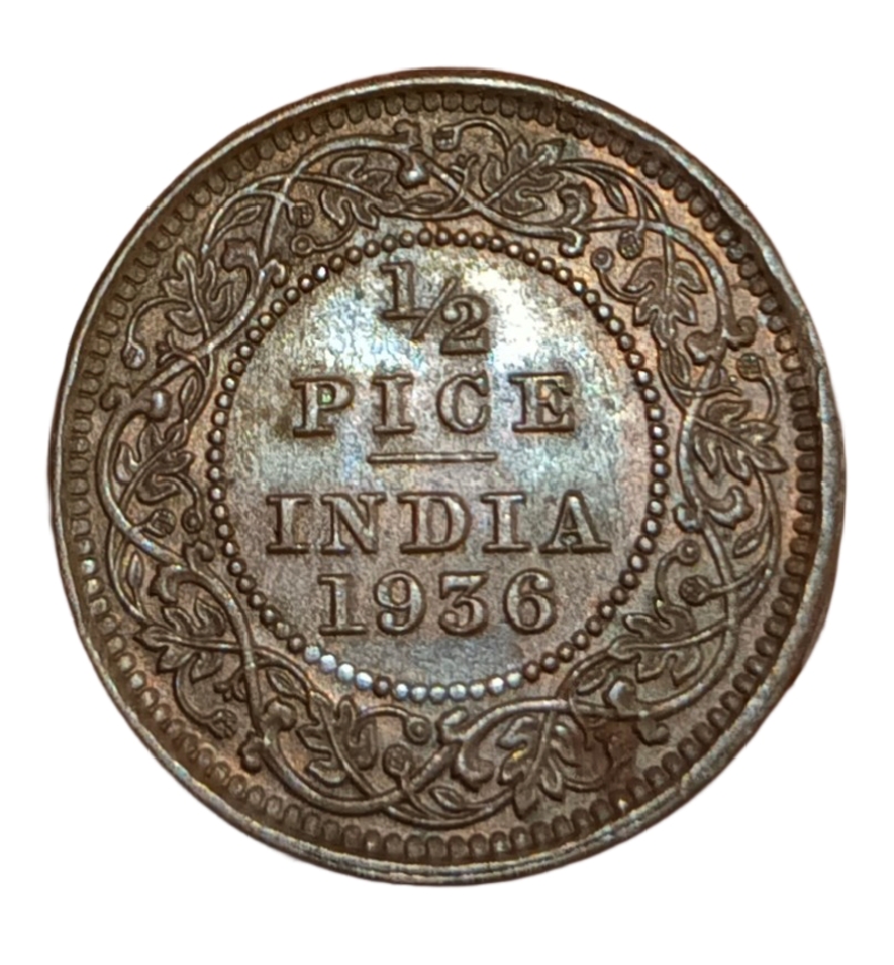 The British India Copper 1/2 PICE coin from the year 1936 featuring King George-V is a remarkable collectible piece in Almost UNC (Almost New) condition. Issued during the colonial era, this coin showcases intricate craftsmanship and historical significance. Made of copper, this coin bears the portrait of King George-V, adding a touch of regal charm to any collection. The coin’s high grade and well-preserved condition make it a sought-after item among numismatists and history enthusiasts alike. Each coin carries a unique piece of history from the British Raj in India, making it a valuable addition to any collection. Whether you’re a seasoned collector or a beginner looking to start a coin collection, this piece offers a glimpse into the past and a tangible connection to a bygone era.