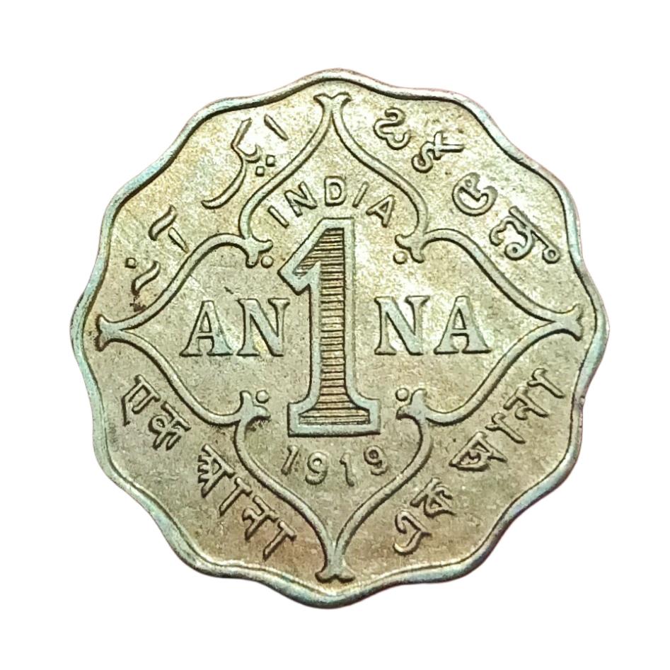 British India ONE ANNA Cu/Ni Year 1919 King GEORGE-V **SCARE** High Collectable Grade