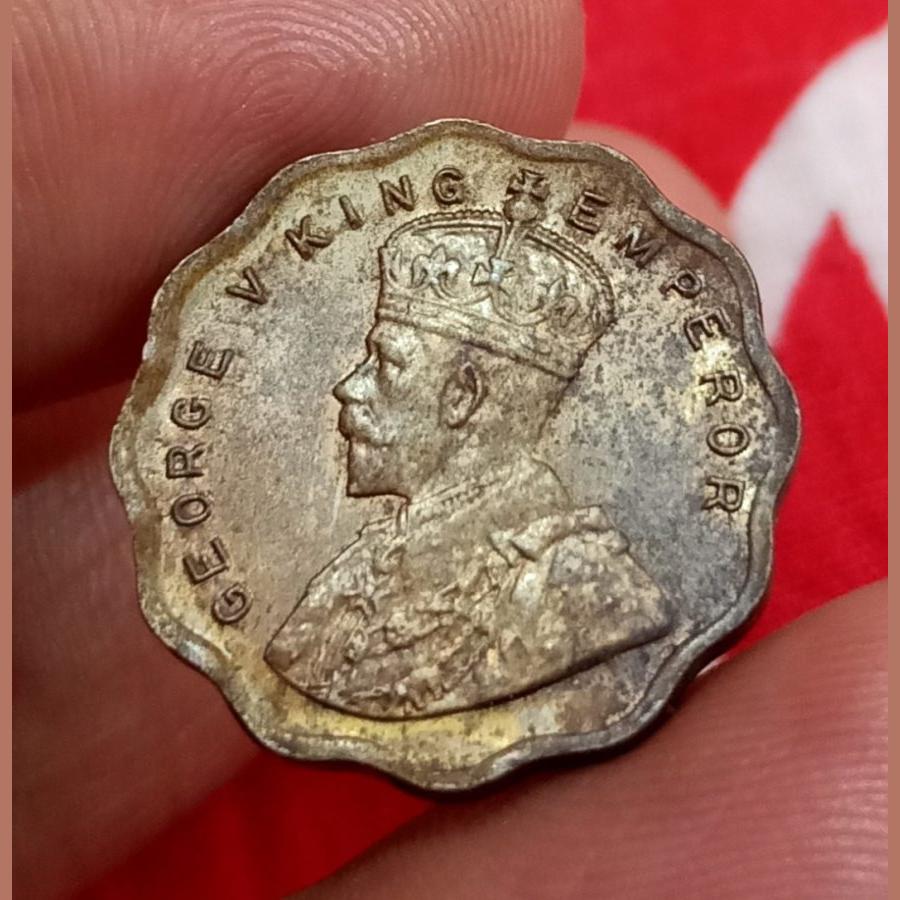 British India ONE ANNA Cu/Ni Year 1935 King GEORGE-V SCARE UNC Grade with Original Mint Luster