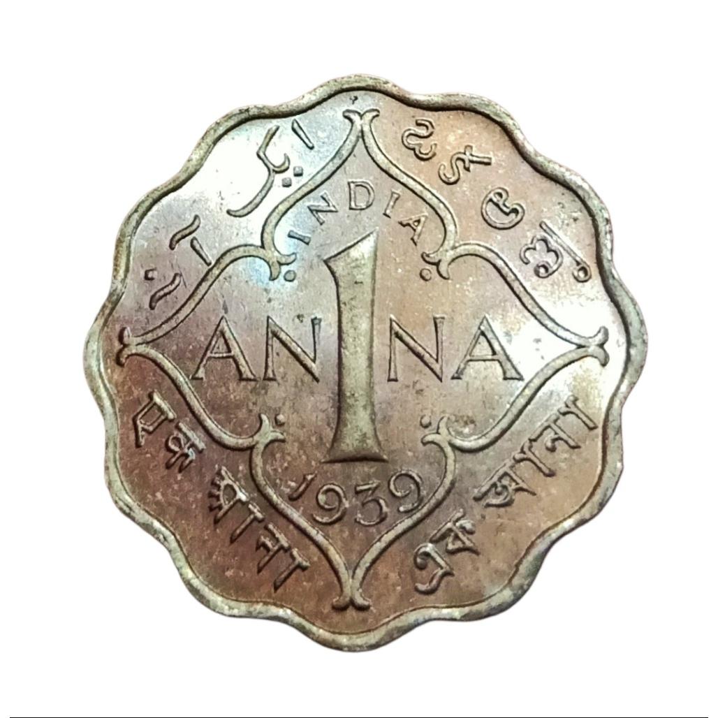 British India ONE ANNA Cu/Ni Year 1939 King GEORGE-VI Calcutta Mint in UNC Grade with Mint Luster
