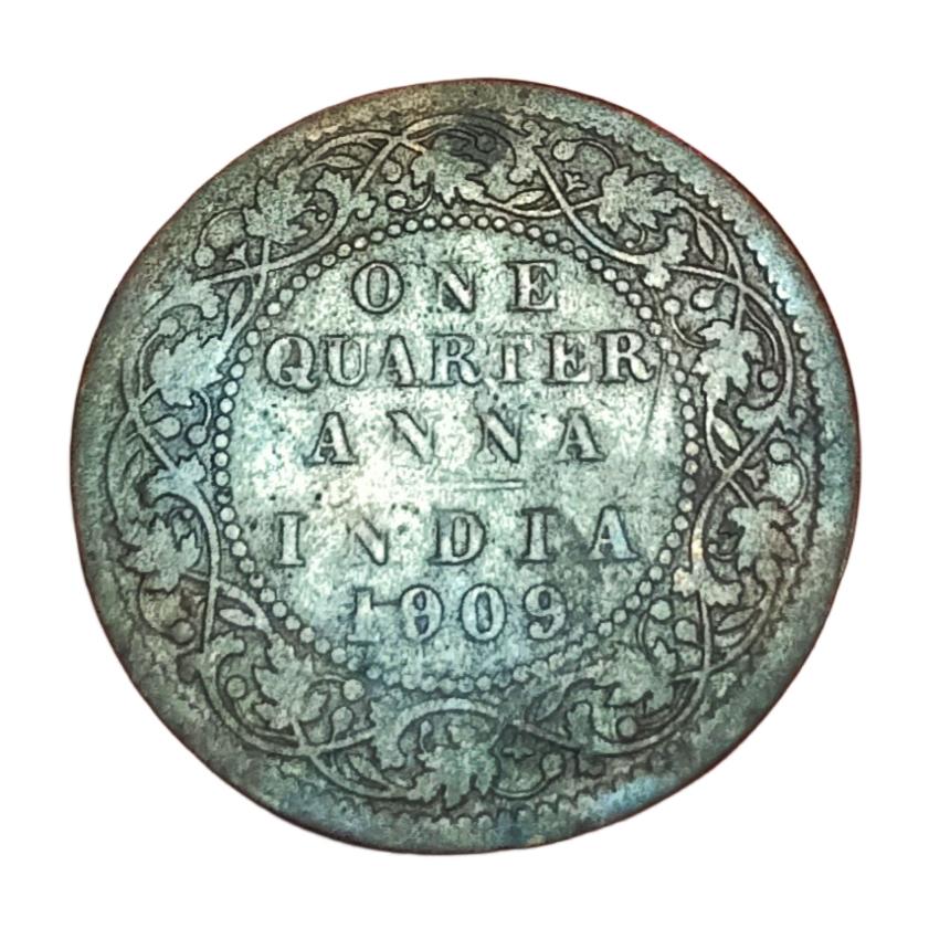 British India ONE QUARTER ANNA Key Date Year 1909 King EDWARD-VII **RARE** Collectable Grade.
