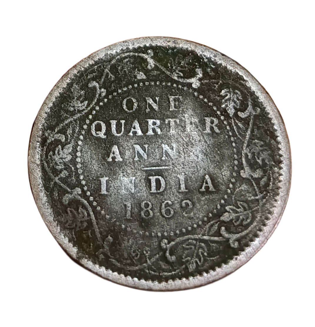 British India ONE QUARTER ANNA Year 1862 QUEEN VICTORIA Collectable Grade.