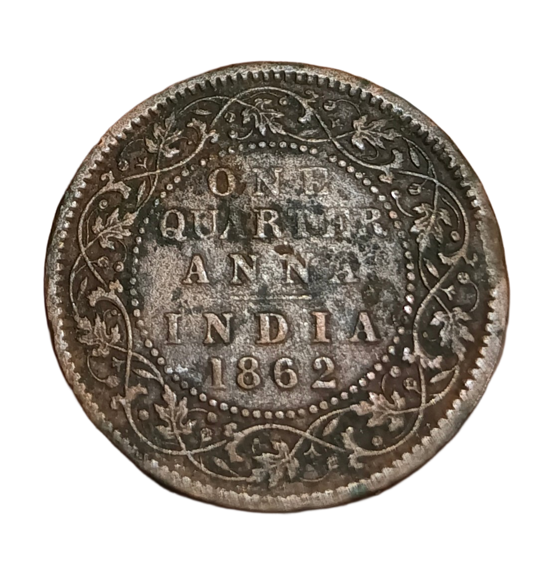🌟 Historical 1862 British India ONE QUARTER ANNA coin