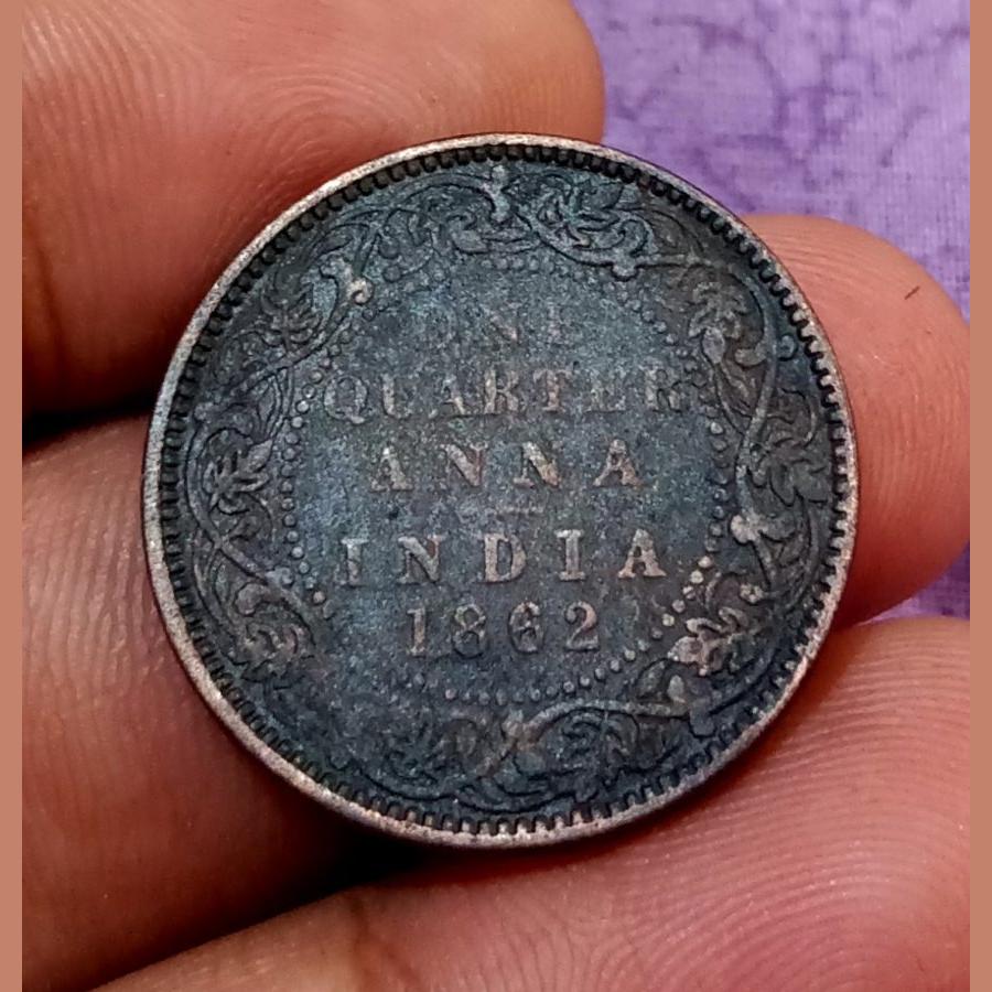 British India ONE QUARTER ANNA Year 1862 VICTORIA QUEEN SCARE Collectable Grade.