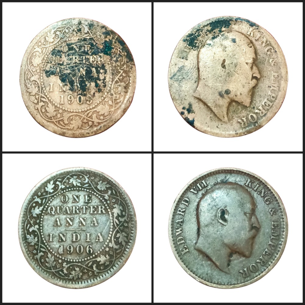 British India ONE QUARTER ANNA’S Year 1906 and 1909 King EDWARD-VII **V. SCARE** Used Conditions.