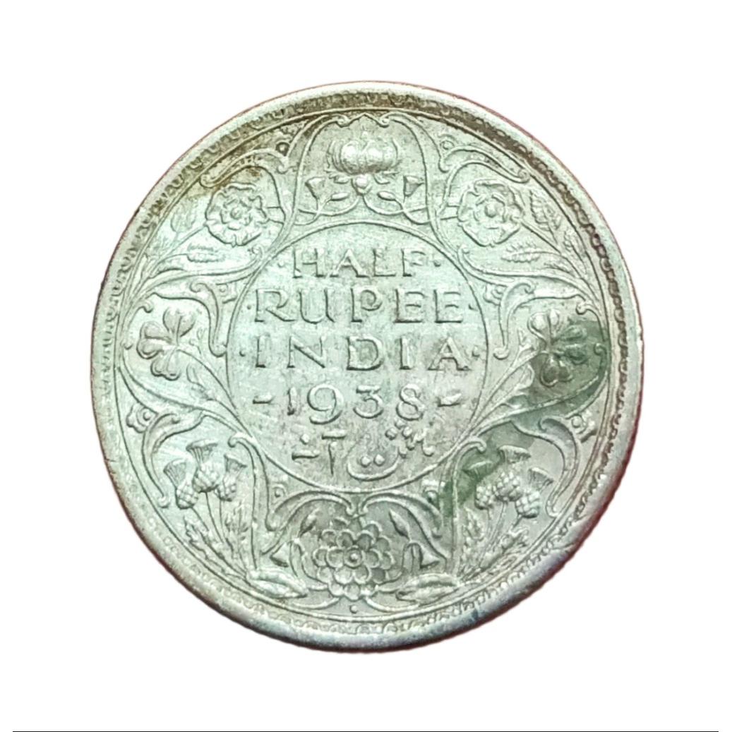 British India Silver 1/2 Rupee KEY DATE Year 1938 King GEORGE-VI RARE Collectable Grade.