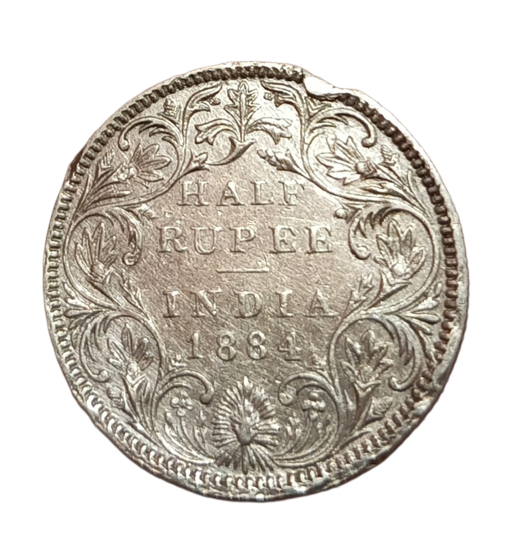 British India Silver 1/2 Rupee Year 1884 VICTORIA EMPRESS **RARE** Collectable Grade.