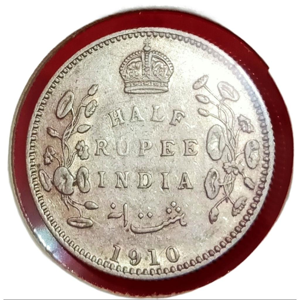 British India Silver 1/2 Rupee Year 1910 King Edward-VII **RARE** High Grade Complete Details