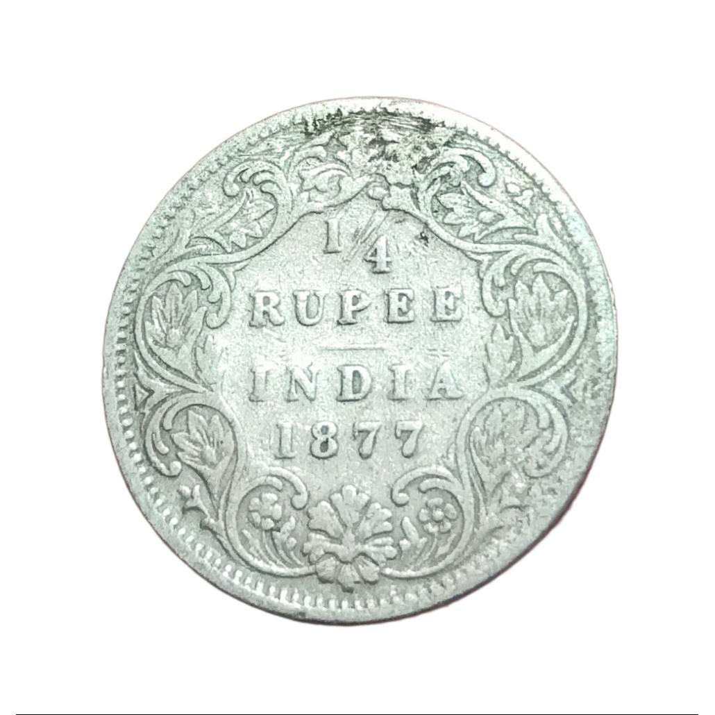 British India Silver 1/4 Rupee Year 1877 VICTORIA EMPRESS RARE Collectable Grade.