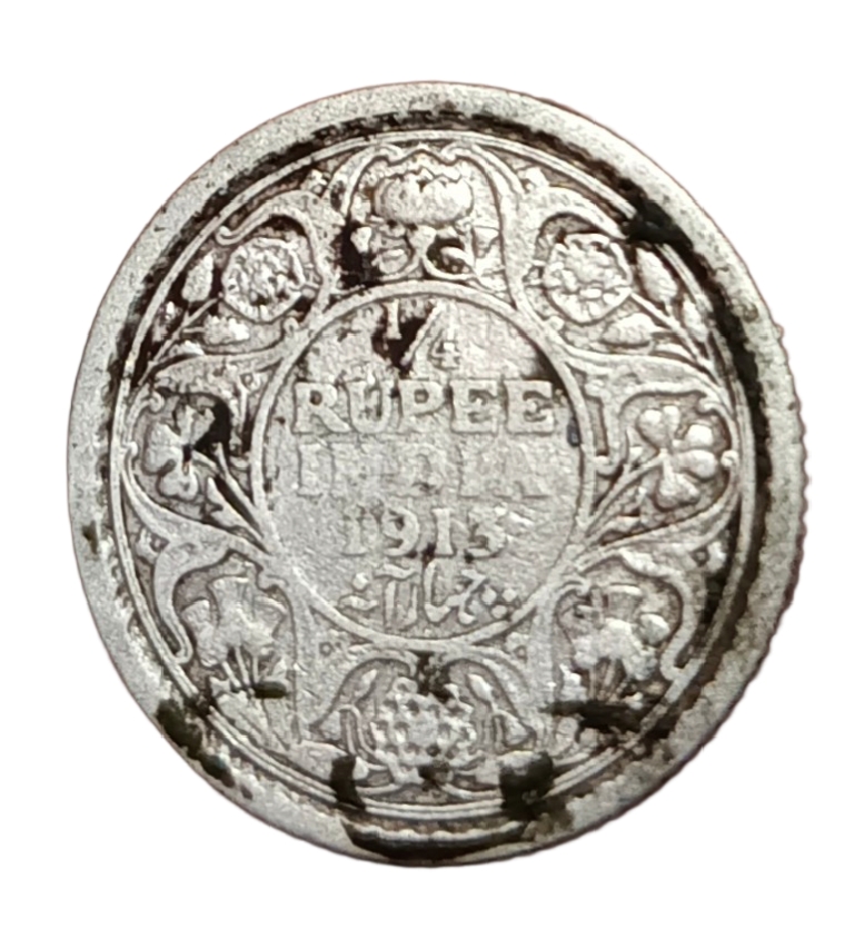 British India Silver 1/4 Rupee Year 1913 King GEORGE-V **SCARE** Used Condition.