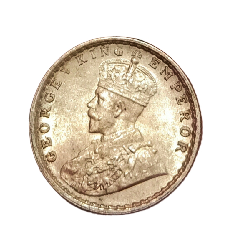 British India Silver 1/4 Rupee Year 1919 King GEORGE-V in AUNC Grade with Mint Luster