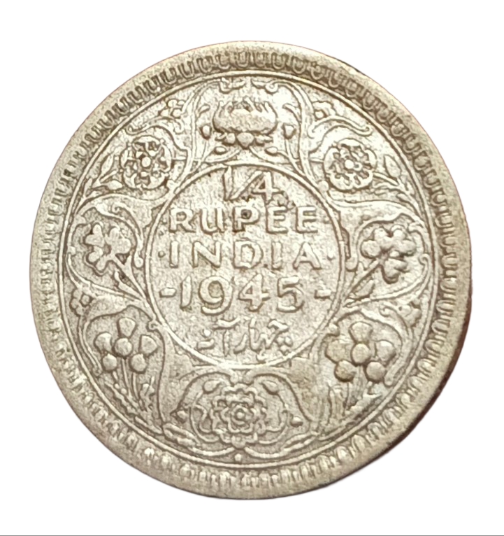 🏷️ Rare 1945 British India Silver 1/4 Rupee coin