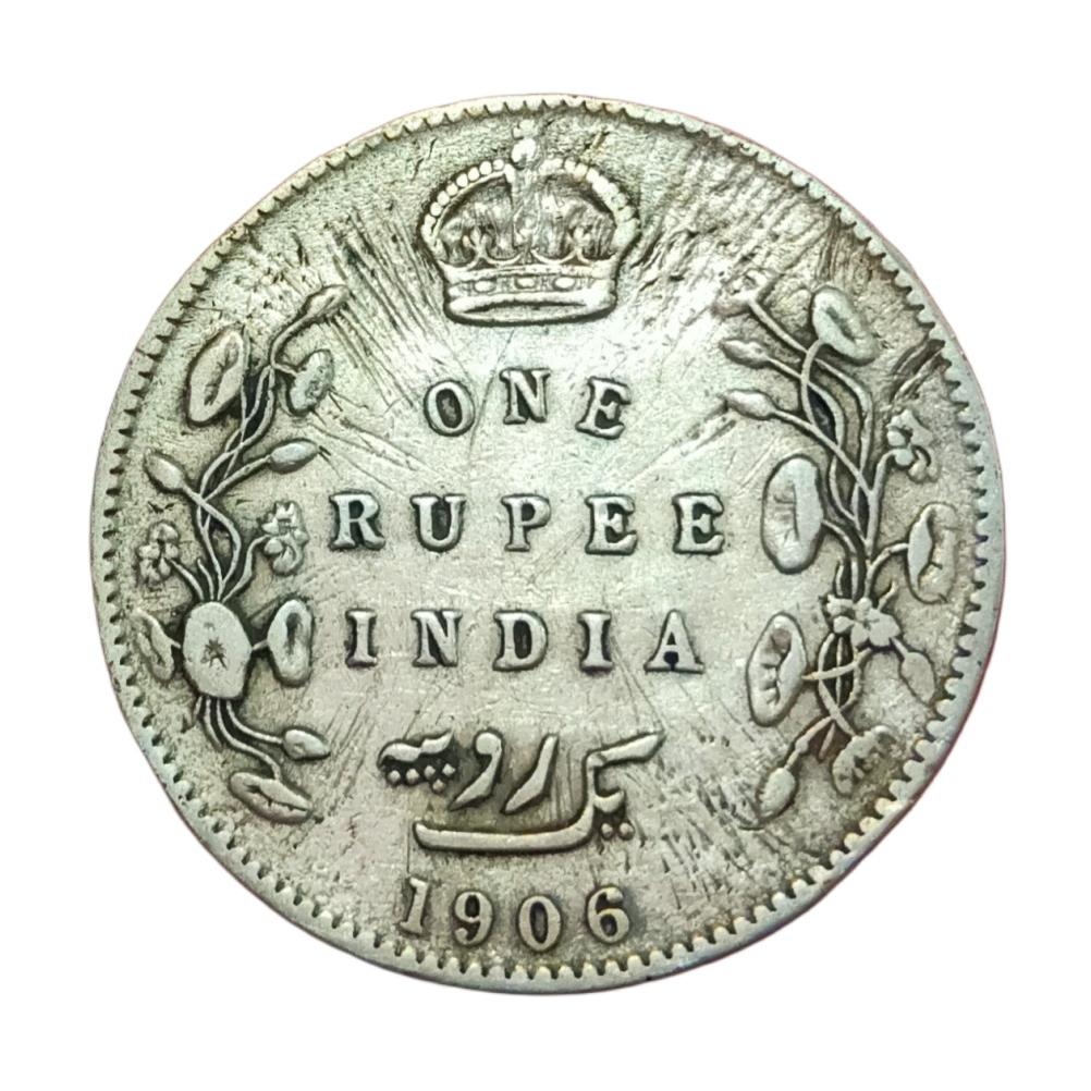 British India Silver Rupee 1906 King EDWARD-VII Major SUN BURST Error **RARE** Collectable Grade