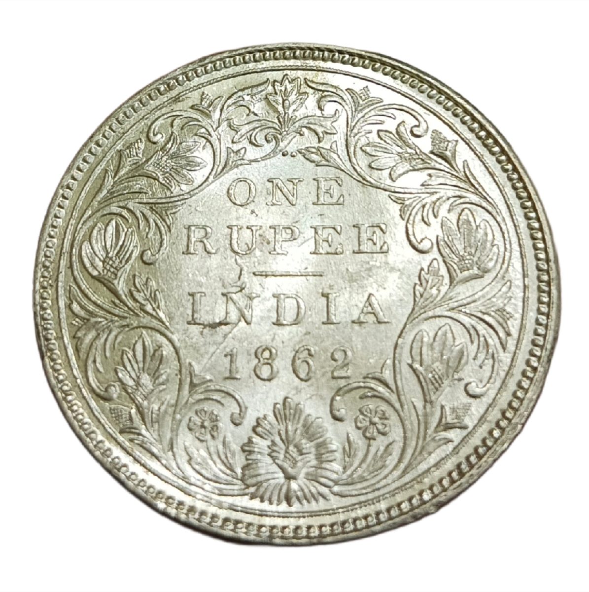 🌟 Rare 1862 British India Silver Rupee with Dot on Top Variety