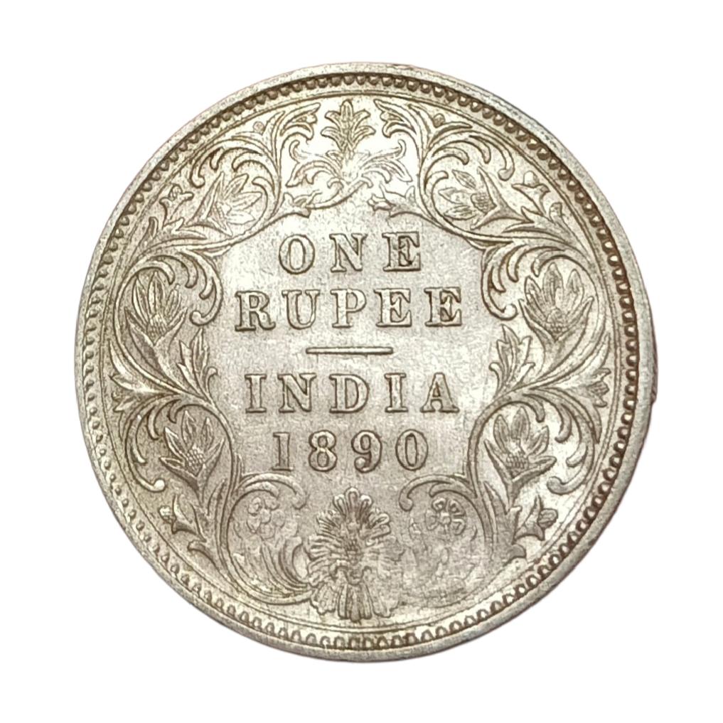 British India Silver Rupee Year 1890 VICTORIA EMPRESS in High AUNC Grade.