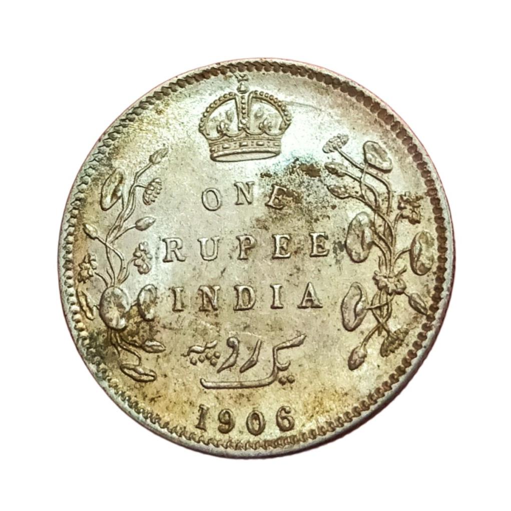 British India Silver Rupee Year 1906 King EDWARD-VII in RAW AUNC Grade.