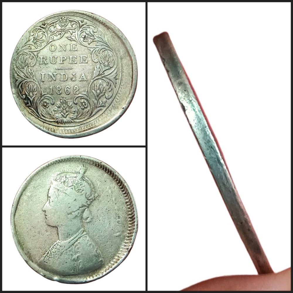 British Silver Rupee 1862 with 4 Dots MAD” MISALIGNED SHIFT Back Normal PLAIN EDGE **EX-RARE** Error