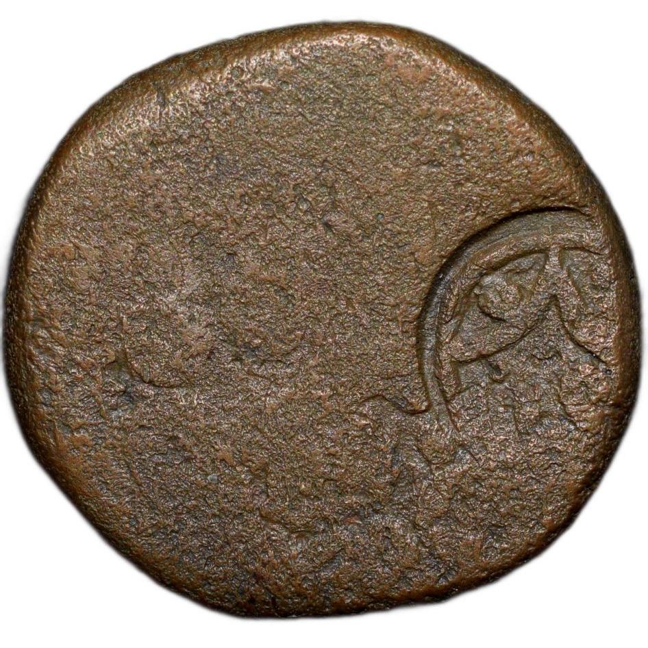 Bidar Sultanate, Amir Barid I (AH910-949/1504-1542AD), Copper 2/3 Gani, Counter marked with persian legends on Bahamani Coin with Circular impact, (Rajgor 602), 9.55 Gms, 19.11 mm, Very Fine, Very Rare.