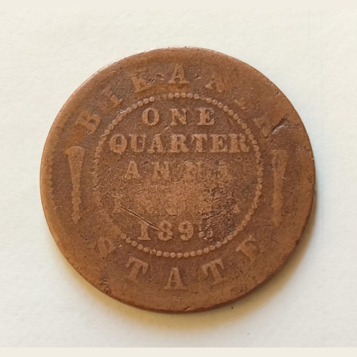 COPPER BRITISH INDIAš®š³ PRINCELY STATE. BIKANER STATE 1895 one quarter aana CONDITION.AS IMAGE