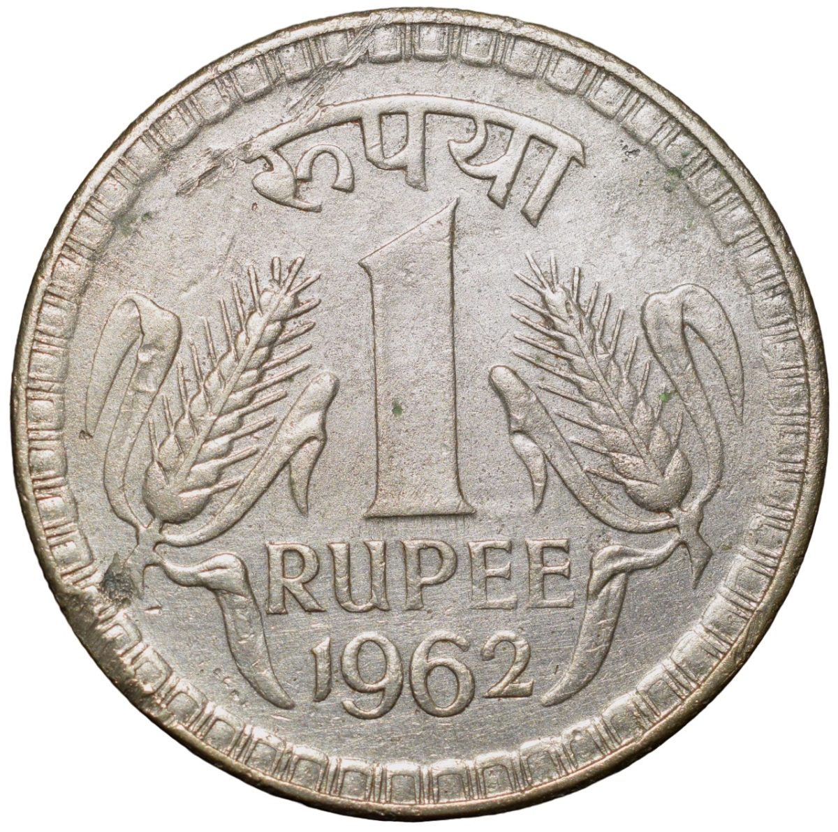 Copper-Nickel 1 Rupee of Republic India (AD 1962) of Calcutta Mint Rare Date