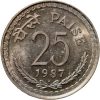 Copper-Nickel 25 Paise of Republic India (AD 1987) of Bombay Mint UNC Grade