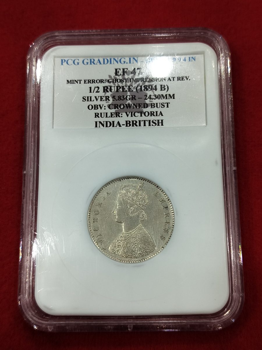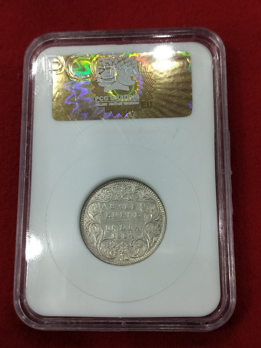 SILVER HALF RUPEE COIN 1894 BRITISH INDIA VICTORIA EMPRESS BOMBAY MINT PCG GRADING EF 47