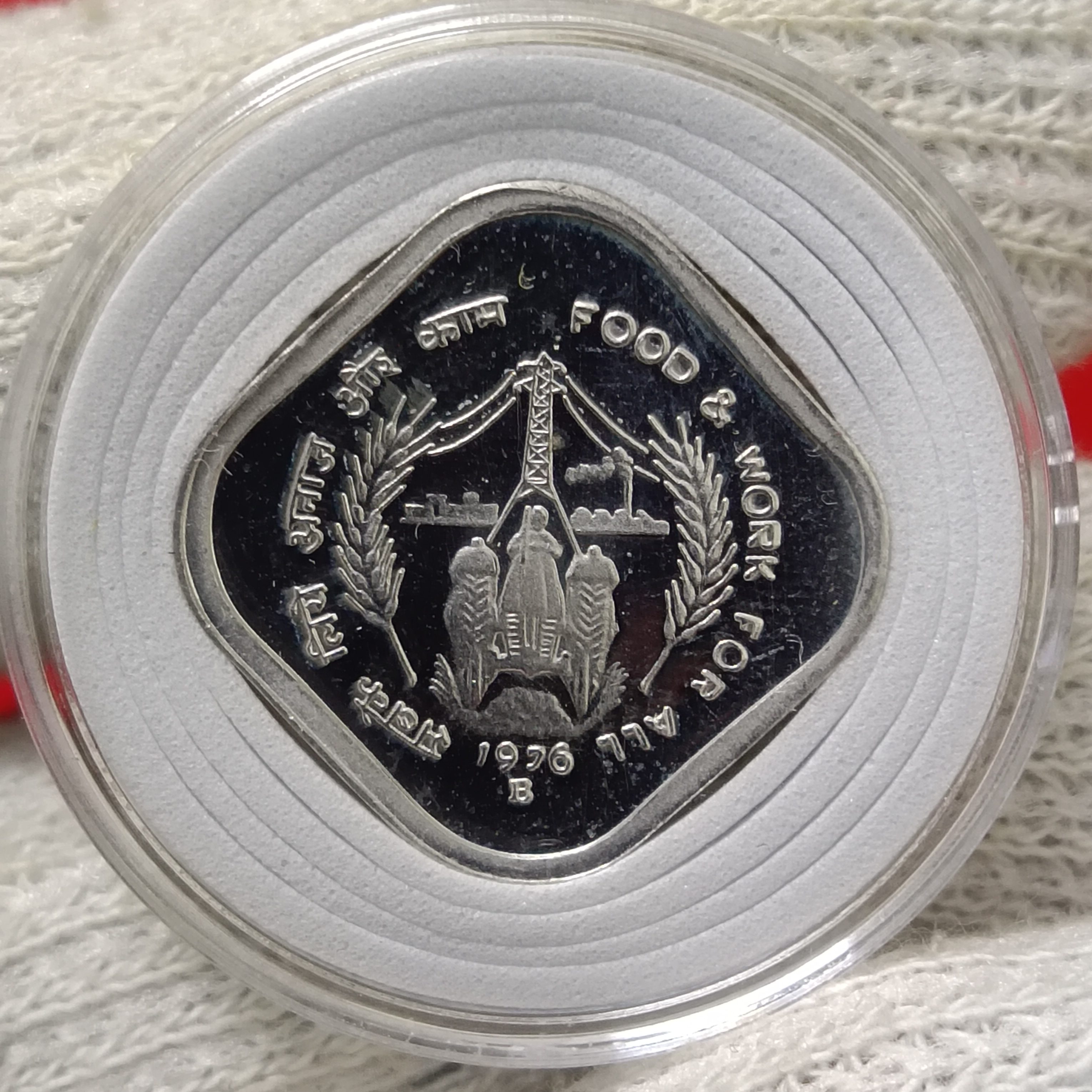 Extremely Rare 5 Paise Commarative Coin Food And Work For All 1976 Year B Mint Mark Proof Coin