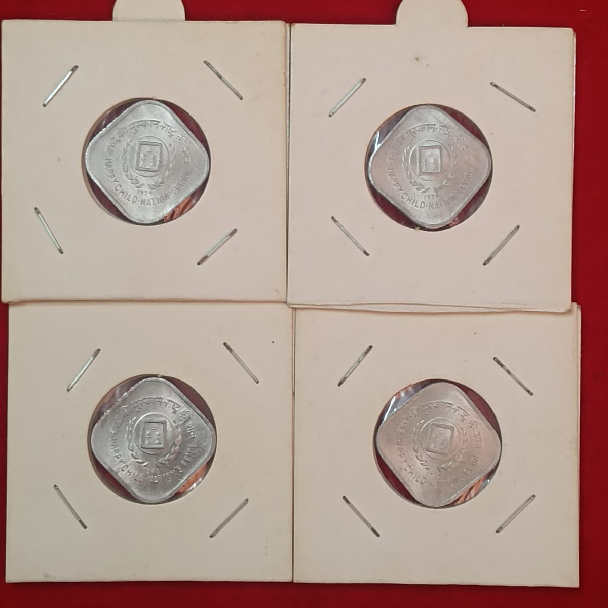 - Five Paise Aluminium Happy child Nations Pride Calcutta Mint Gem Bunc Condition Coin 4 Pcs Given