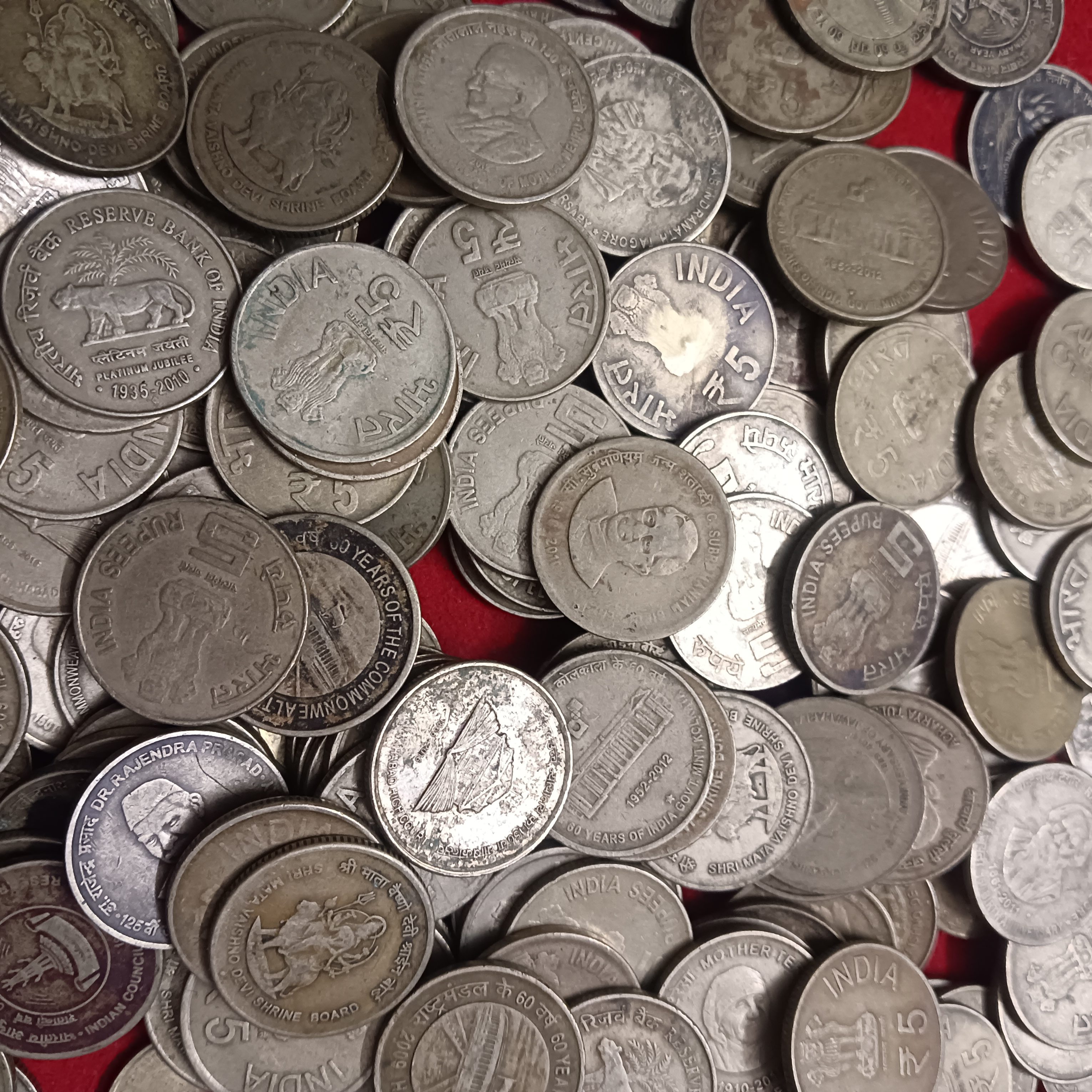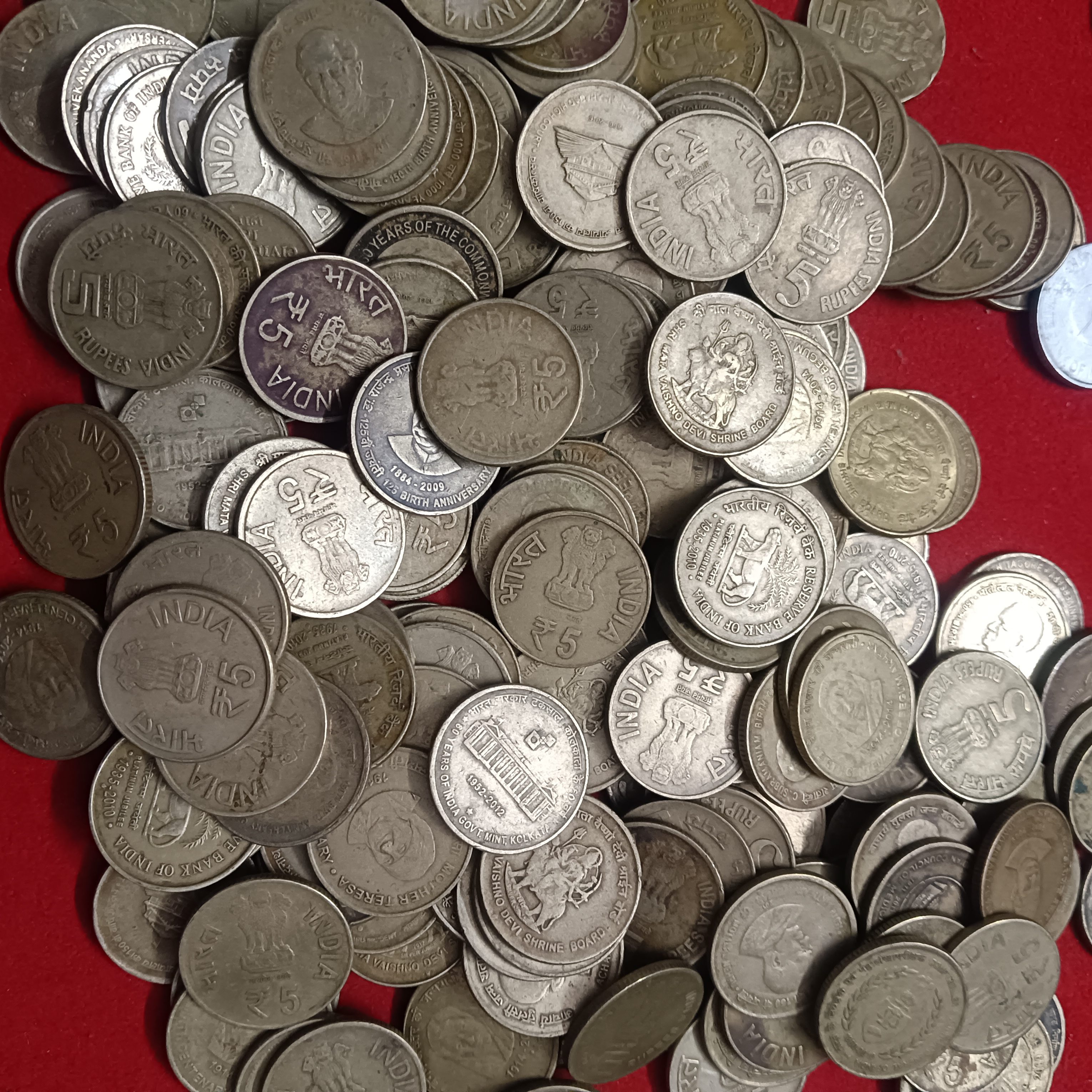 - Five Rs Commarative Scare Coins Mix Varieties Mix Mints 100 Pcs Given Republic of India