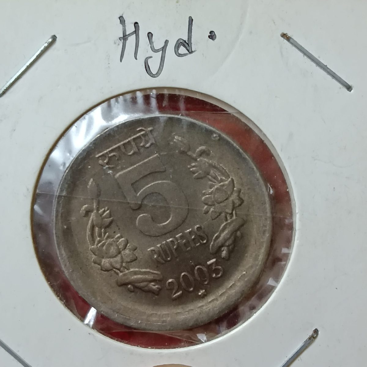 - Five Rs Copper Nickel 2003 Year Hyderabad Mint Unc Condition Error Coin Shifted Coin Error