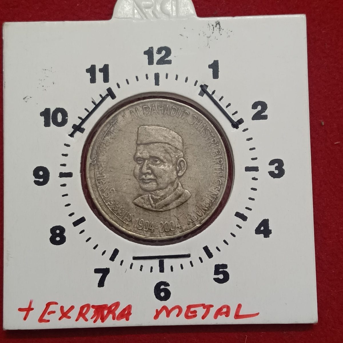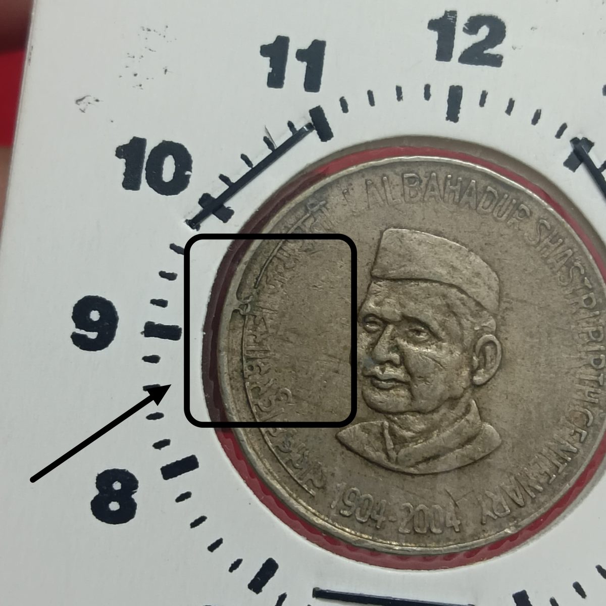 - Five Rs Copper Nickel Rare 1 “o Clock Rotation or Extra Metal Error Lal Bhadur Shastri ji Rare Error Coin RBI Mistake Coin Calcutta Mint