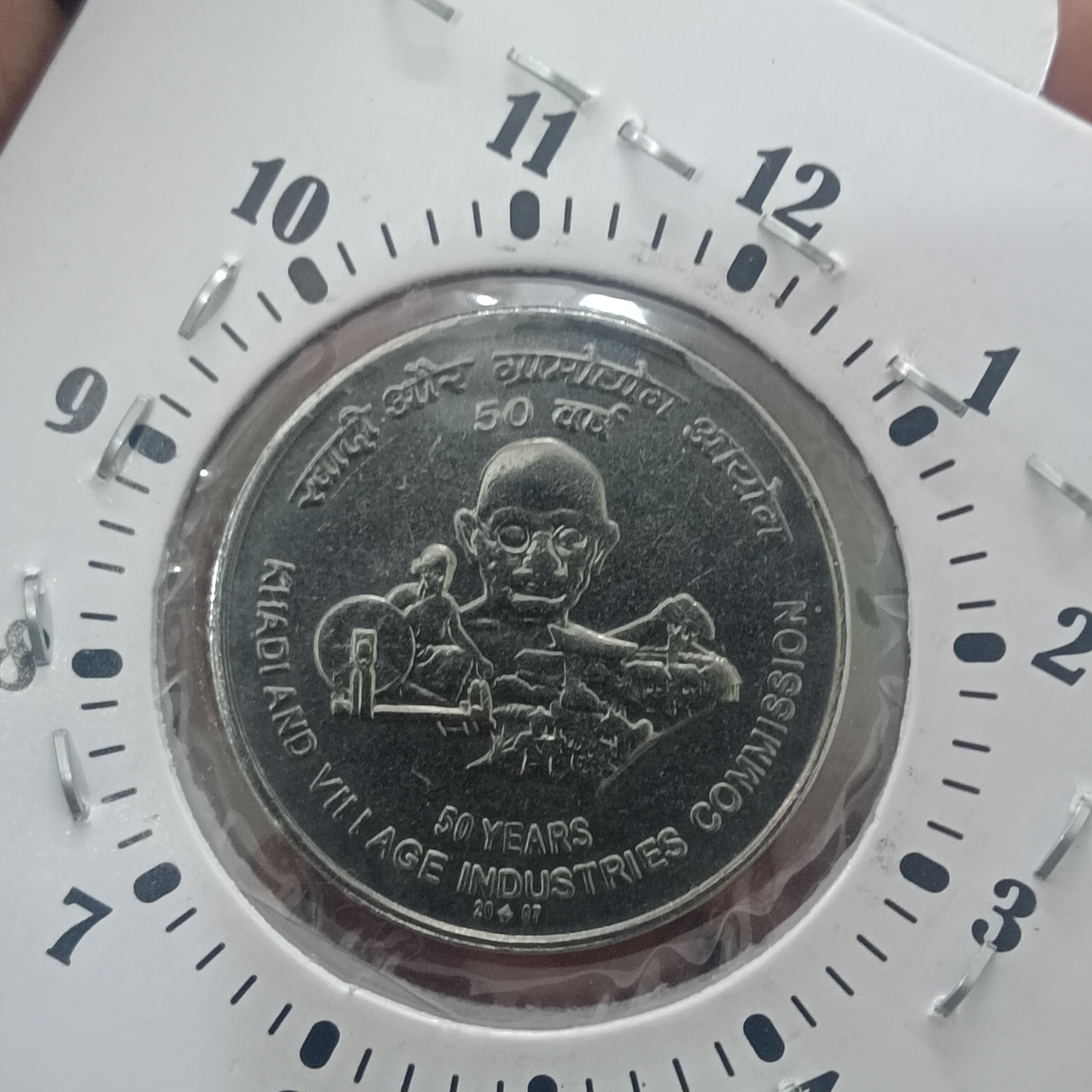 - Five Rs FSS Extremely Rare Khadi And Village Industries Commission Coin Village Error or 1 “o Clock Rotation Error Ultra Gem Bunc Condition Coin