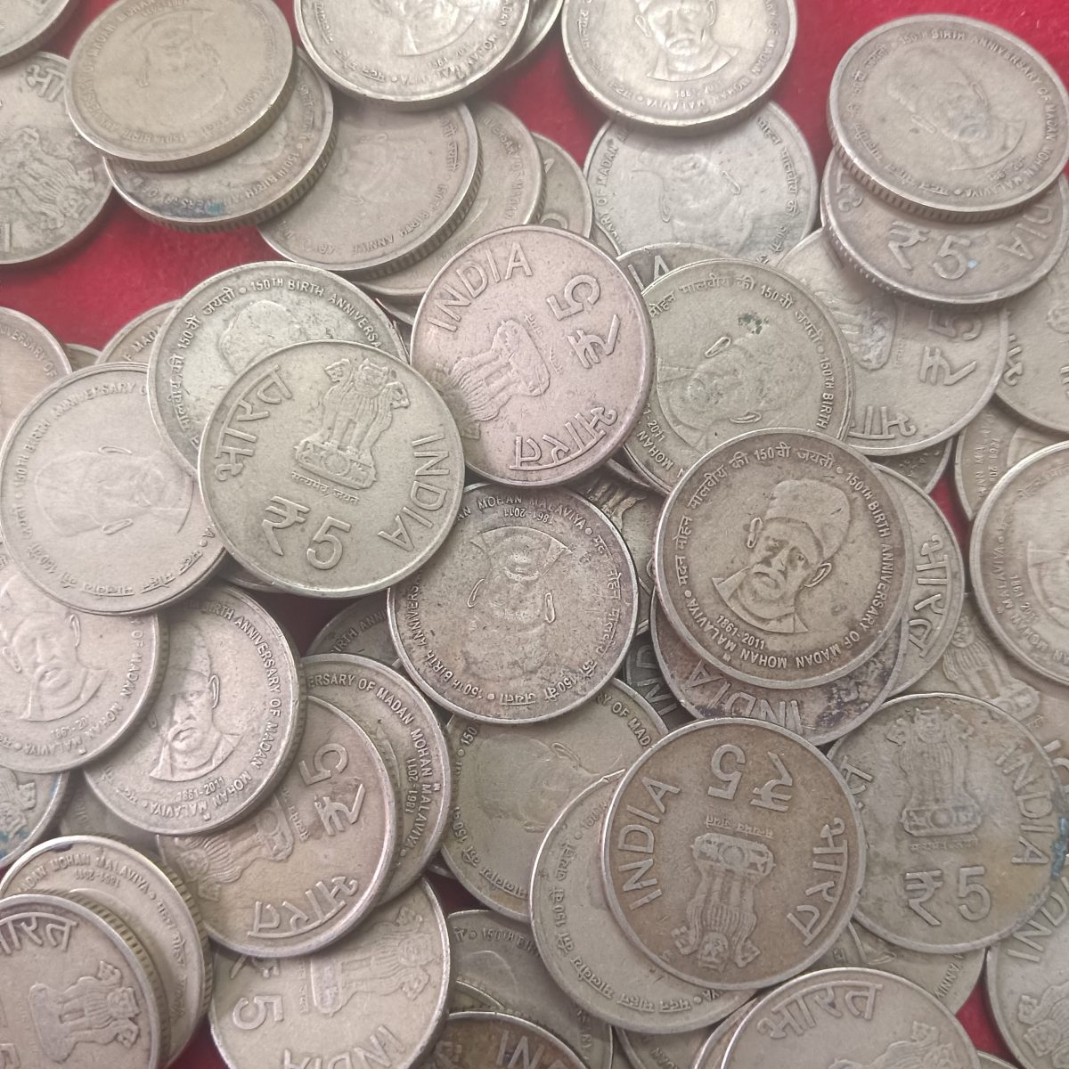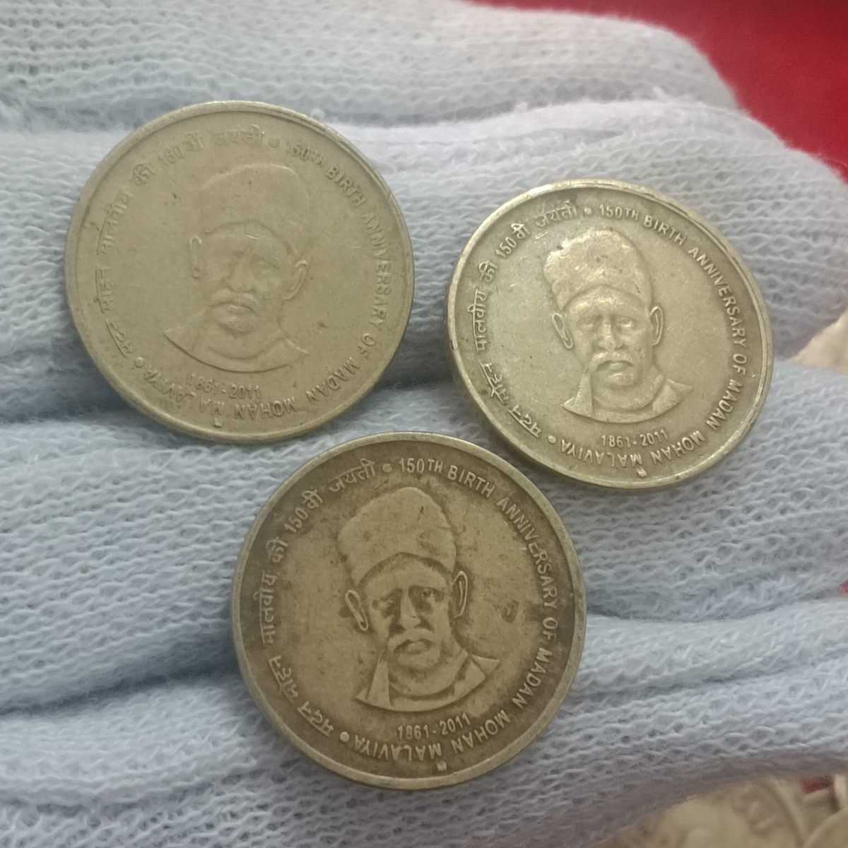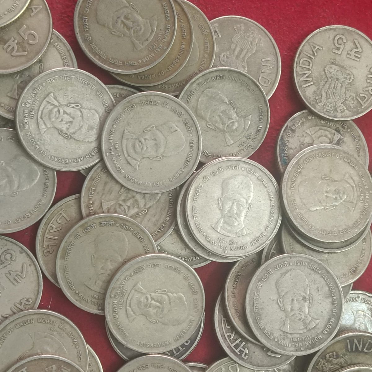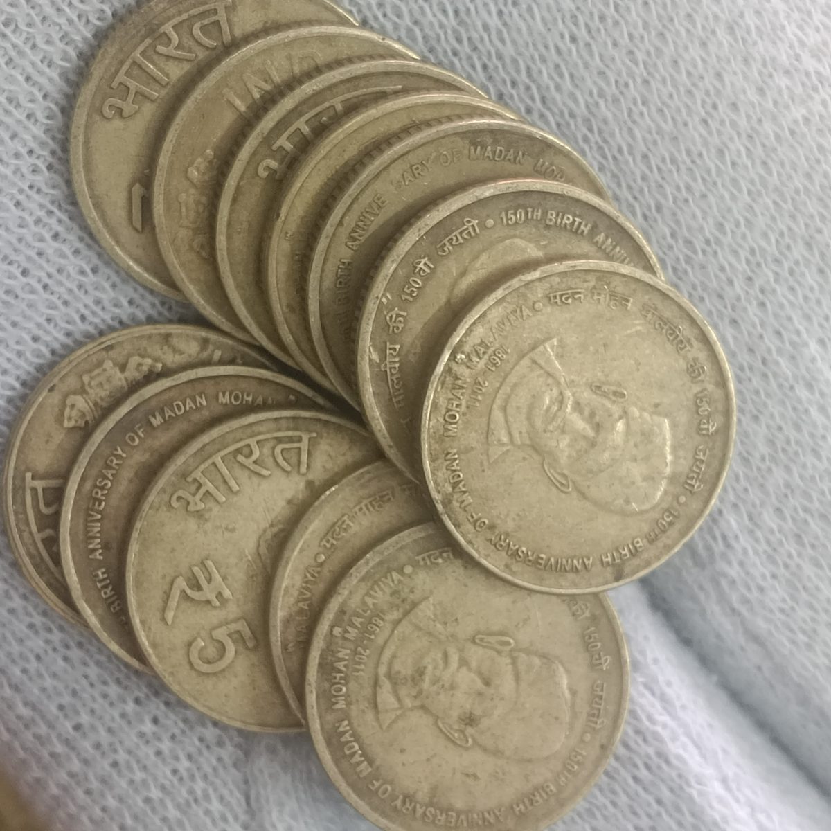 Five Rs Rare Coin 150 th Birth Aniversary Madan Mohan Malaviya ji M Mint Mark Coin 10 Pcs Given Fine Condition