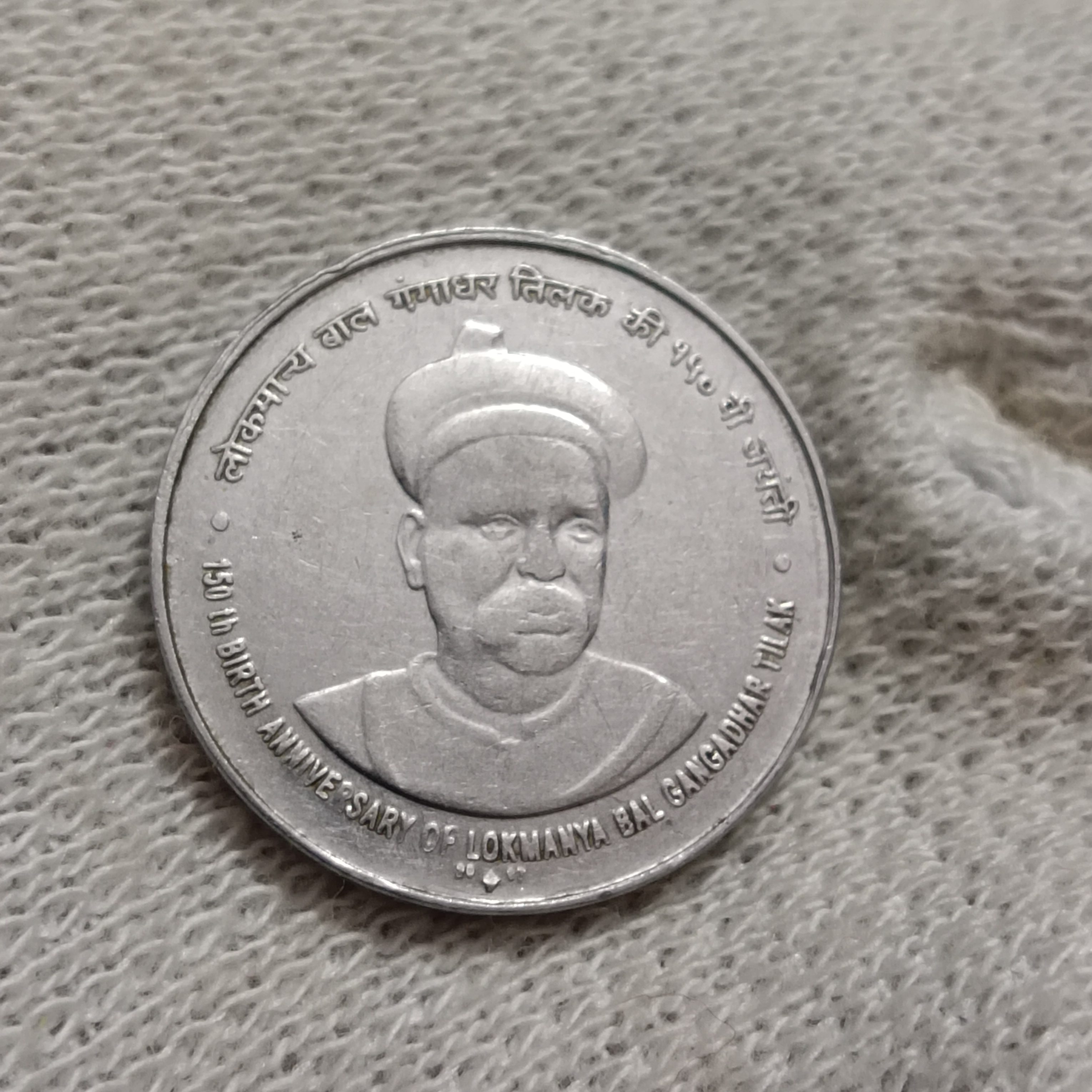 Five Rs Rare Coin FSS 150 th Birth Anniversary of Lokmanya Bal Gangadhar Tilak ki Bombay Mint Good Condition Coin 01
