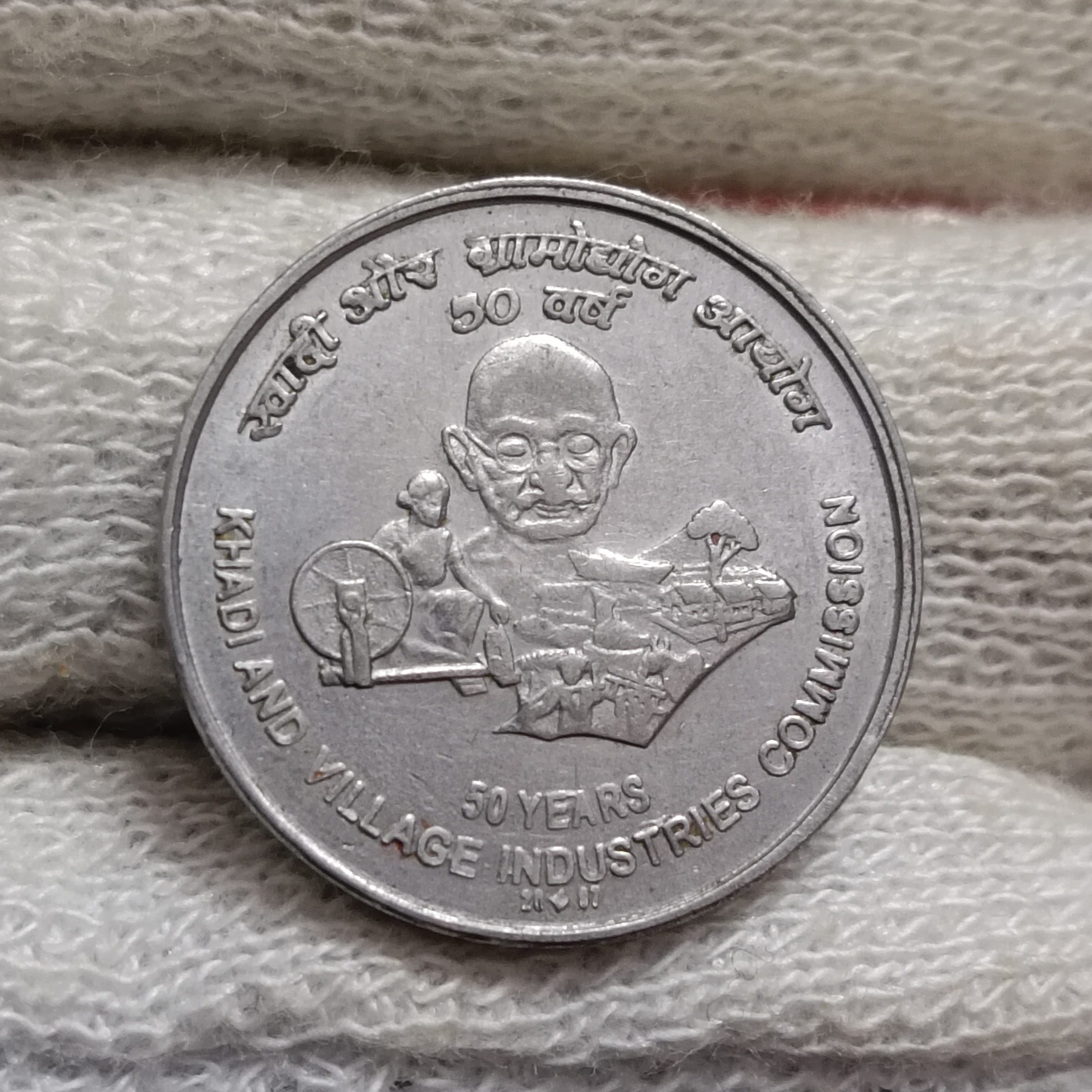 - Five Rs Rare Coin FSS 50 Years OF Khadi And Village Industries Commission Bombay Mint Good Condition 04