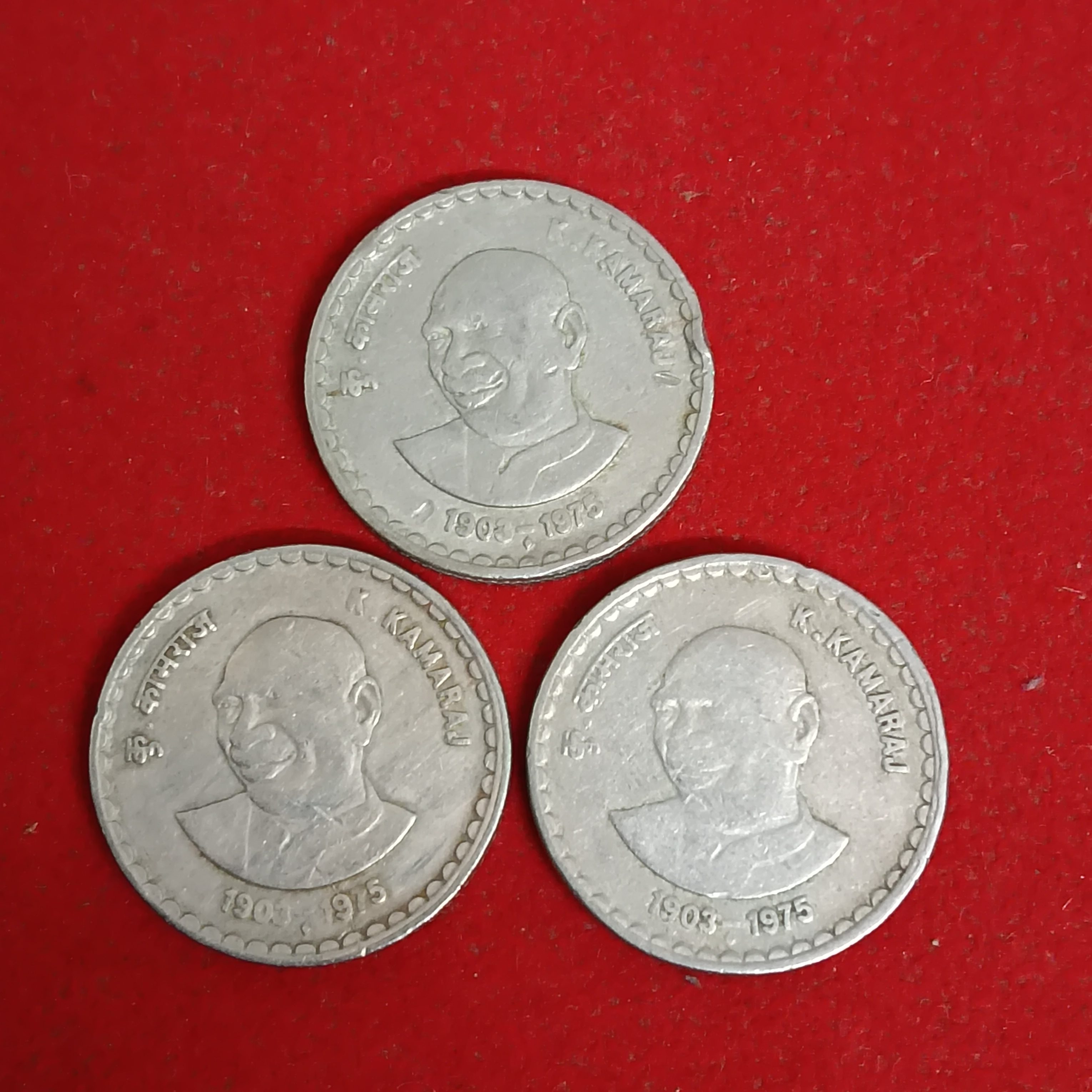 - Five Rs Rare Coin K . Kamaraj 1903-1975 Year Bombay Mint 3 Pcs Given