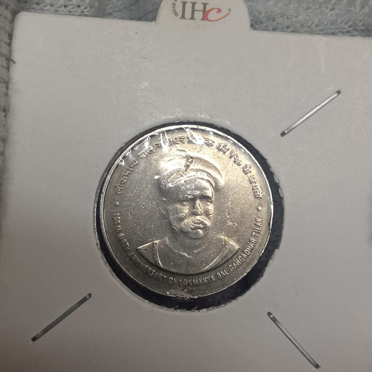 Five Rs Rare Copper Nickel 150 th Anniversary Birth Anniversary Bal Gangadhar Tilak Ki Bombay Mint Top Condition