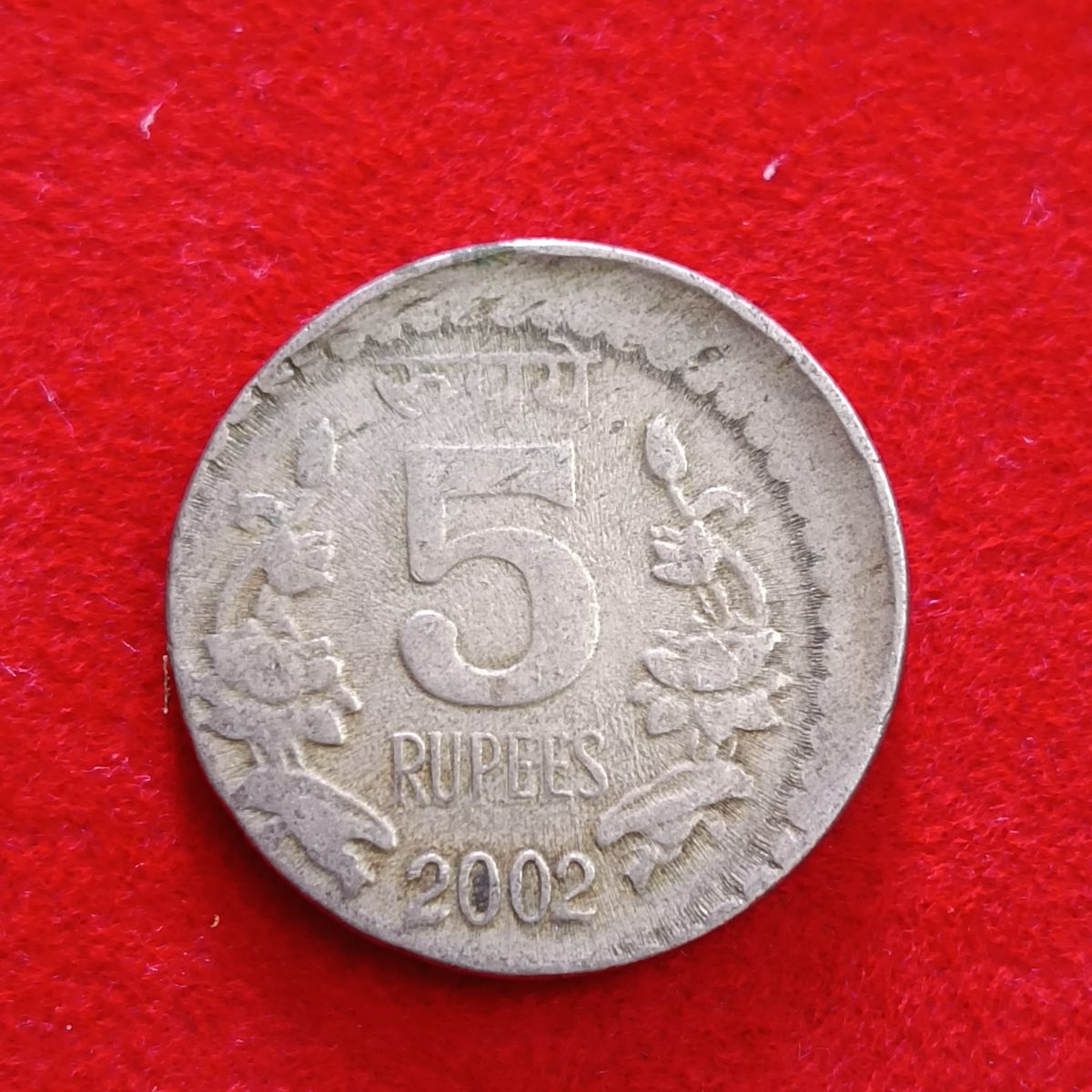 - Five Rs Rare Heavy Shifted Error Coin 2002 Year Calcutta Mint