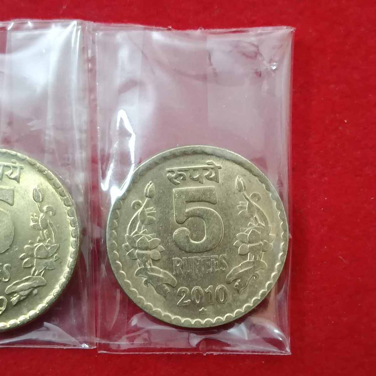 - Five Rs Scare Brass Coin 2009 Or 2010 Year Coin Set Hyderabad Mint Unc Condition