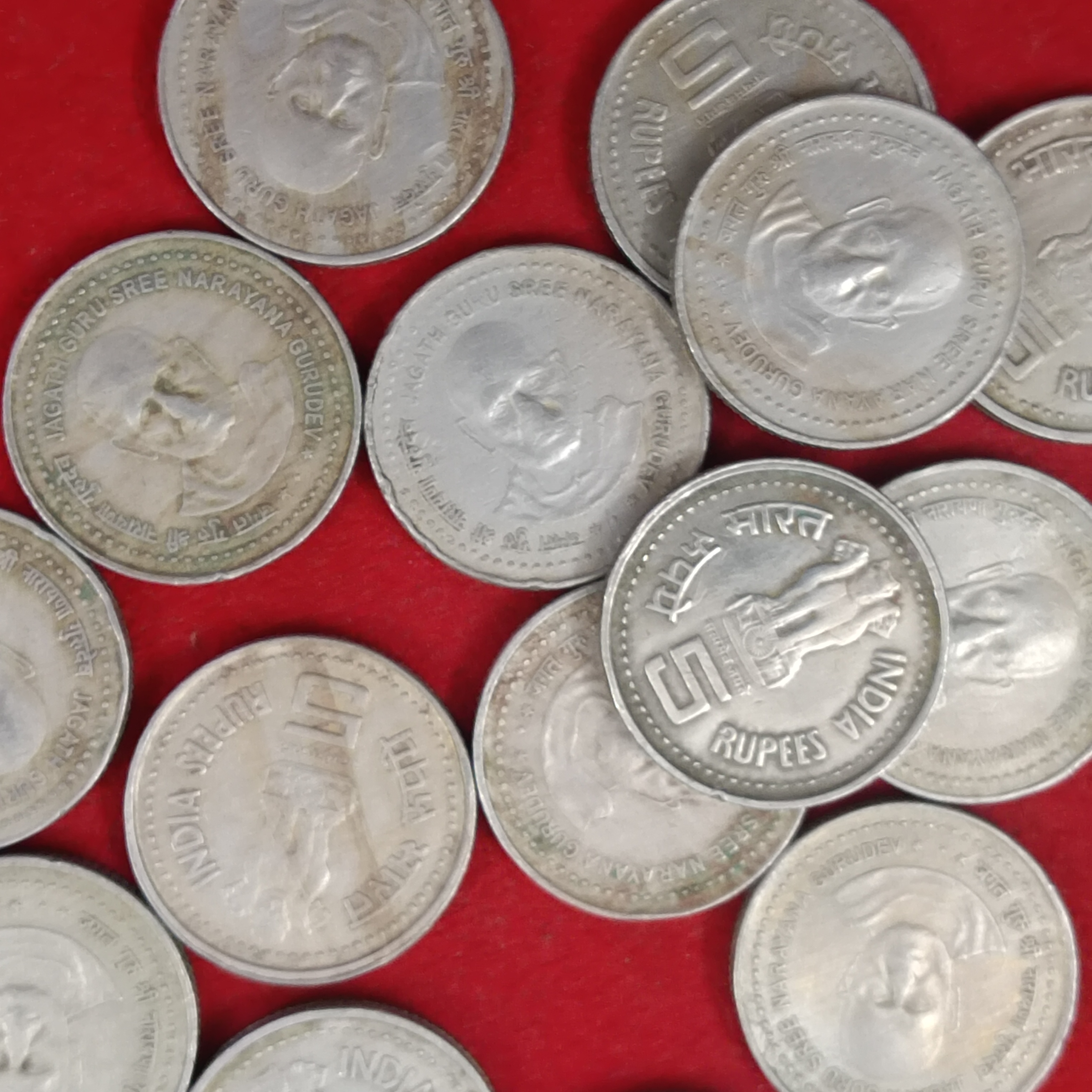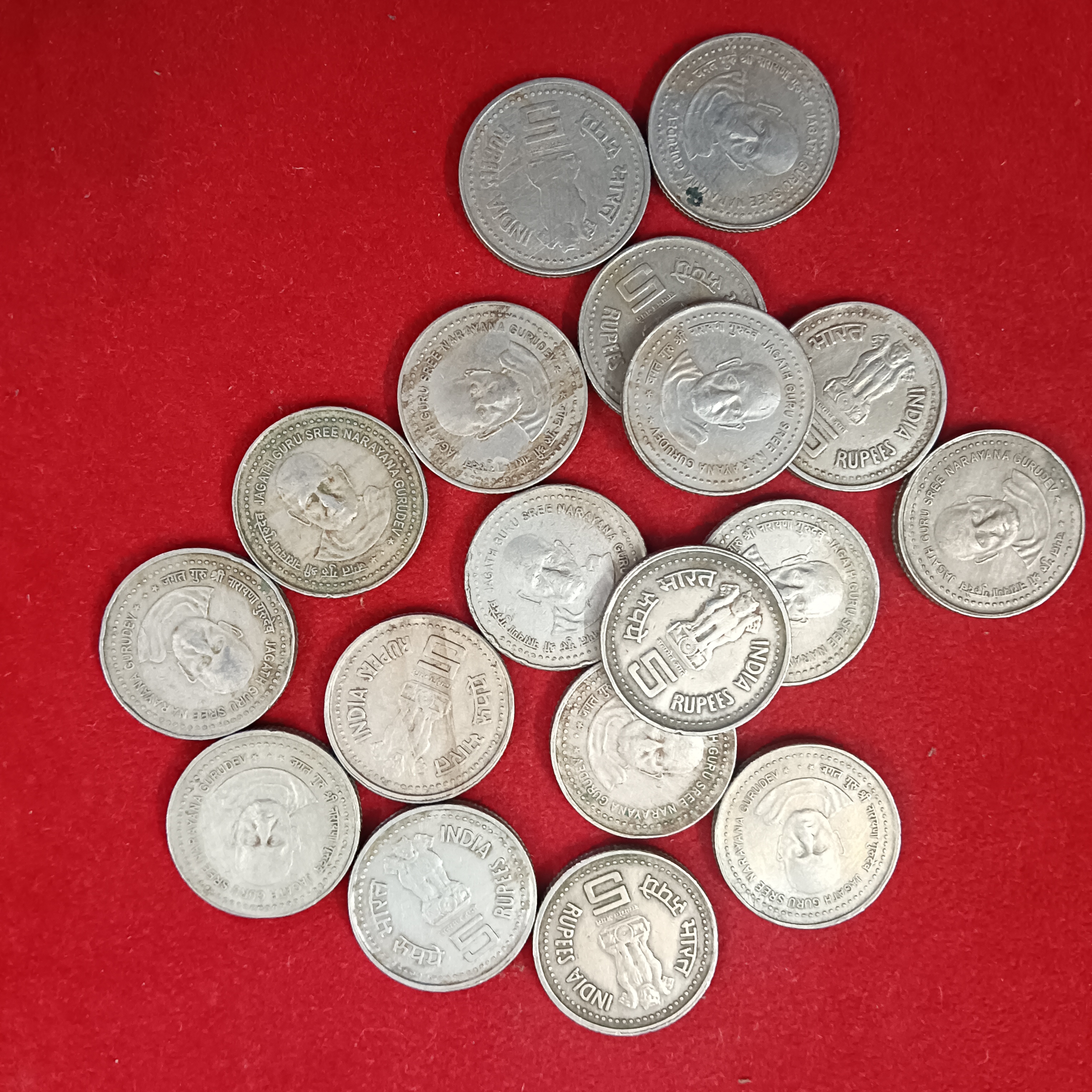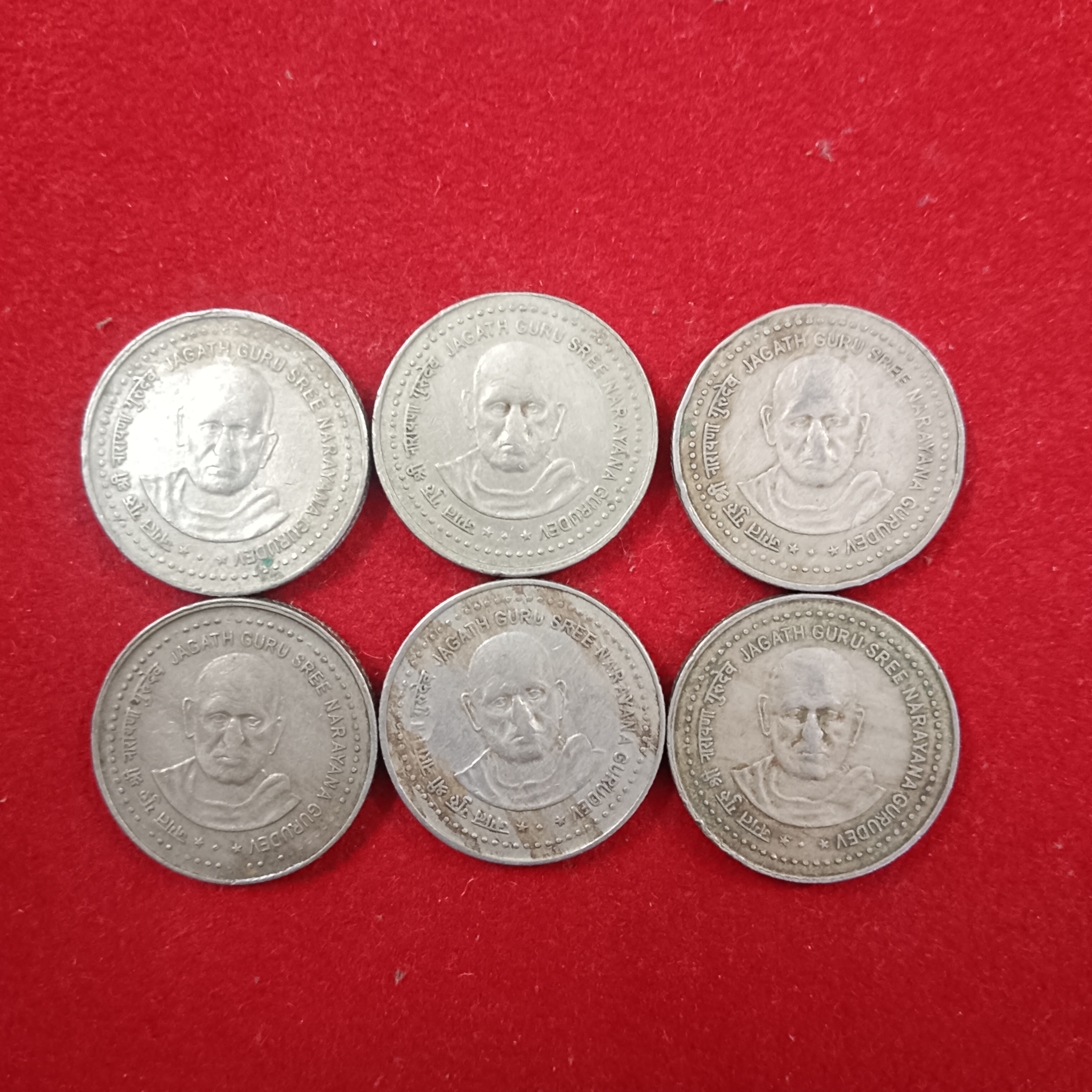 Five Rs Scare Coin Jagath Guru Sree Narayan Gurudev Copper Nickel 5 Pcs Given