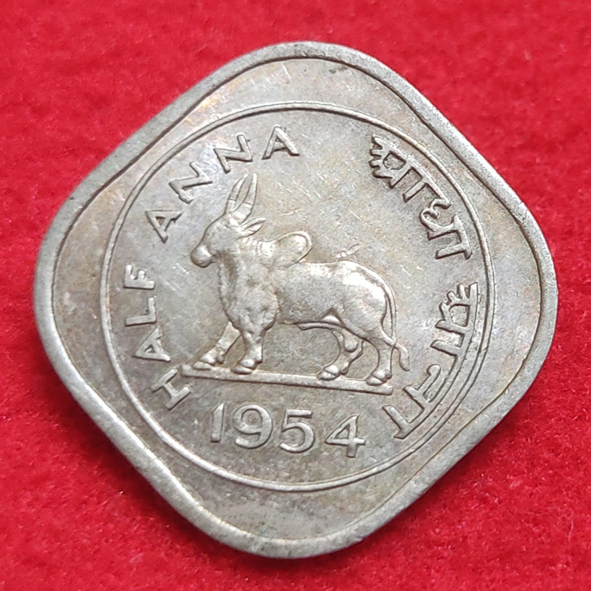 HALF ANNA 1954 🐂 CALCUTTA MINT