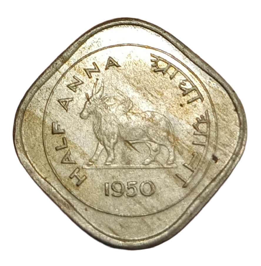 HALF ANNA Cu/Ni COMMEMORATIVE Issue “NANDI 🐂” Year 1950 CALCUTTA Mint **RARE** UNC Grade.
