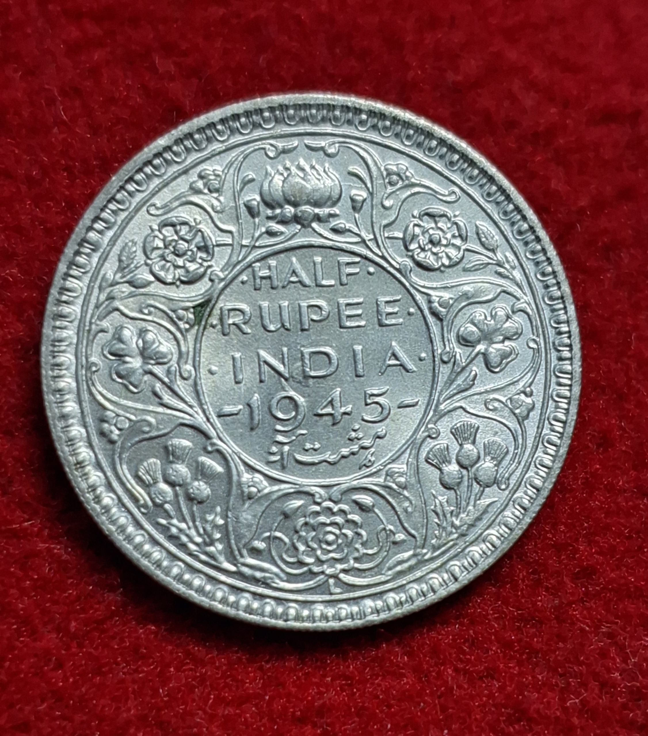 HALF RUPEE 1945 GEORGE VI KING EMPEROR COIN LAHORE MINT UNC CONDITION SKU 07