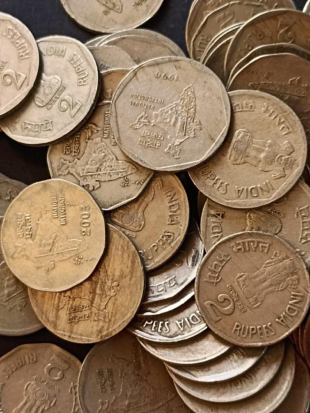 India Denomination 2₹ 2₹ big and small size coin Metal coper nickel