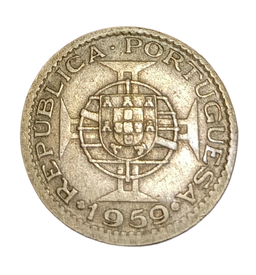 The INDIA PORTUGUESE Cu/Ni 60 CENTAVOS coin from the year 1959 is a remarkable piece of history issued by Estado Da India. Crafted from Copper-Nickel, this coin holds a unique allure due to its high collectible grade. This coin carries with it a piece of the past, reflecting the historical context of Portuguese presence in India during that era. The intricate design and craftsmanship make it a coveted item for collectors and numismatic enthusiasts alike. Its rarity and historical significance add to its collectible value, making it a desirable addition to any collection. This coin is not just a piece of currency but a tangible link to a bygone era, making it a treasured item for those passionate about history and numismatics.
