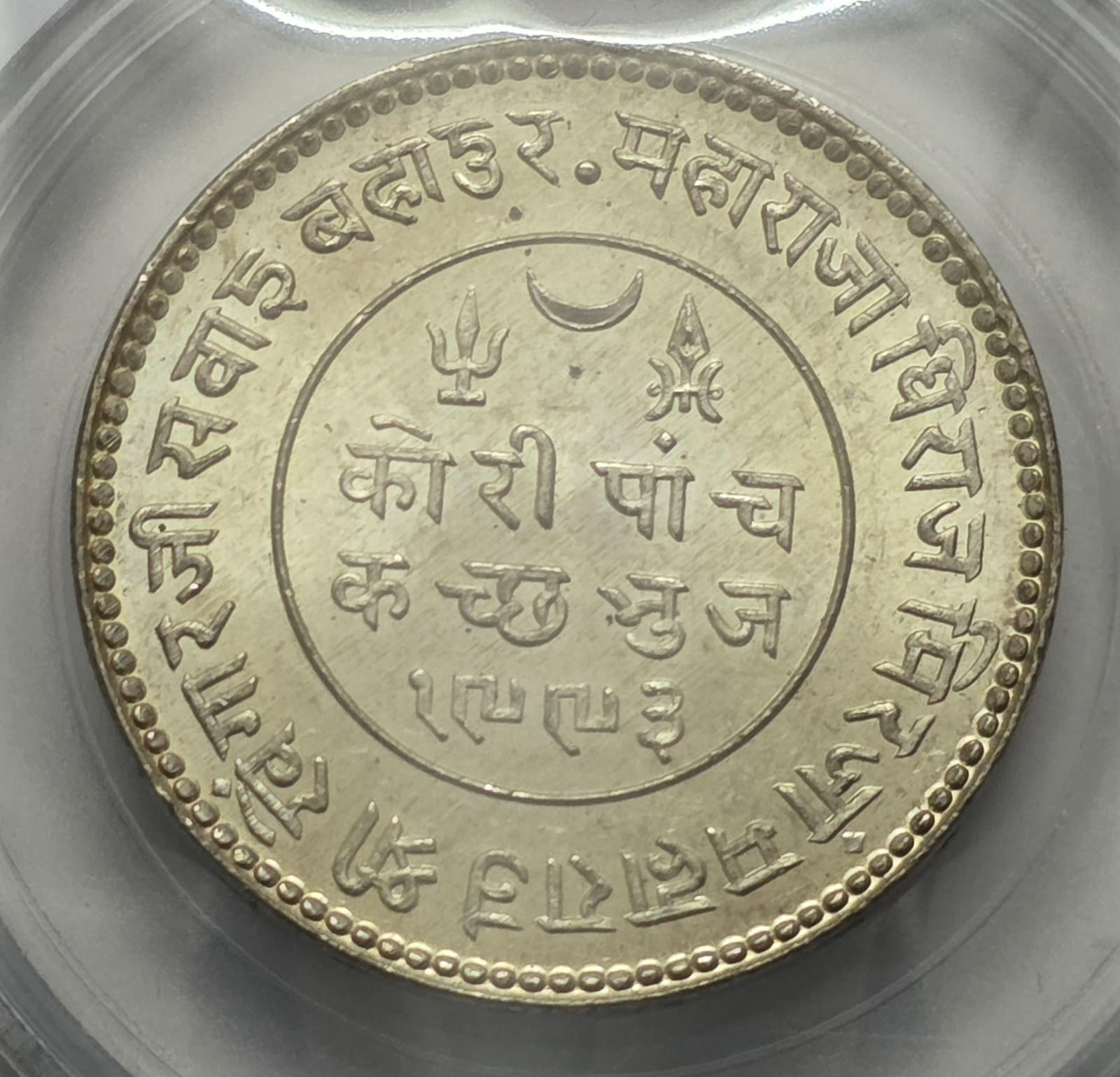 Indian Princely States Kutch Silver 5 Kori Rare UNC