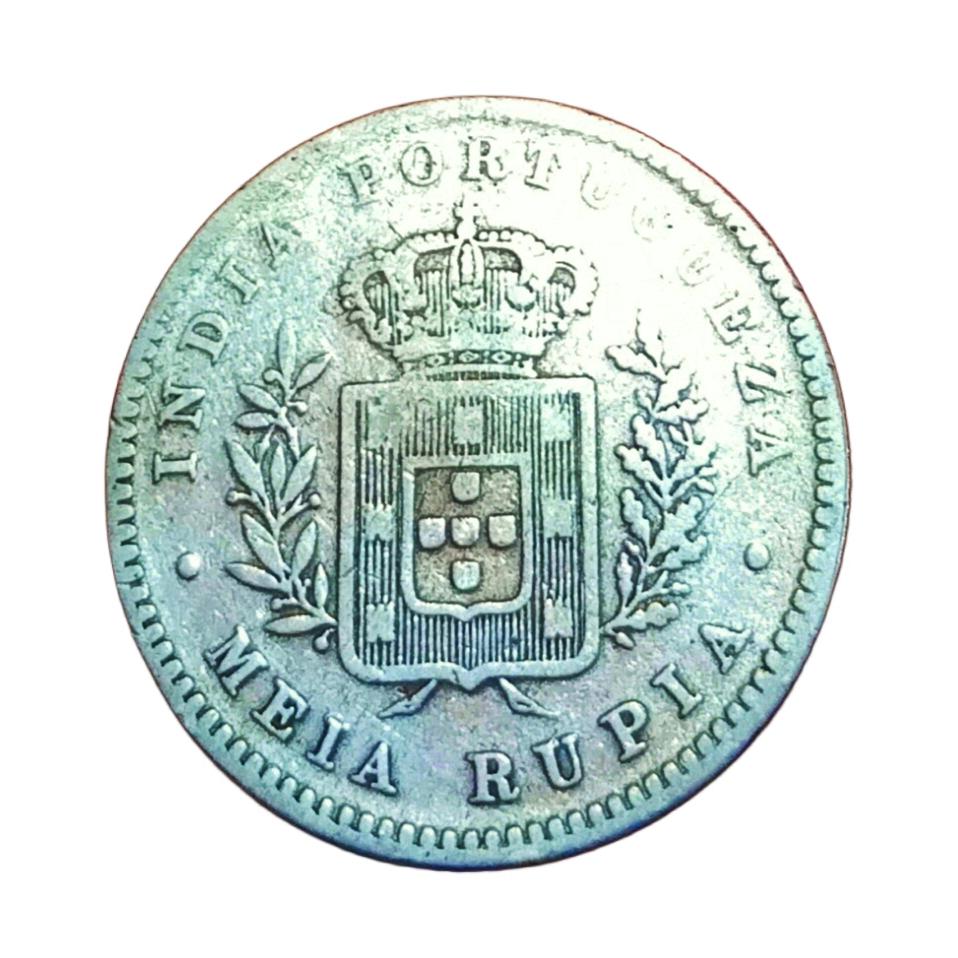 INDO PORTUGUESE Silver MEIA 1/2 RUPIA Year 1881 LUDOVICUS-I **V. SCARE** Collectable Grade.