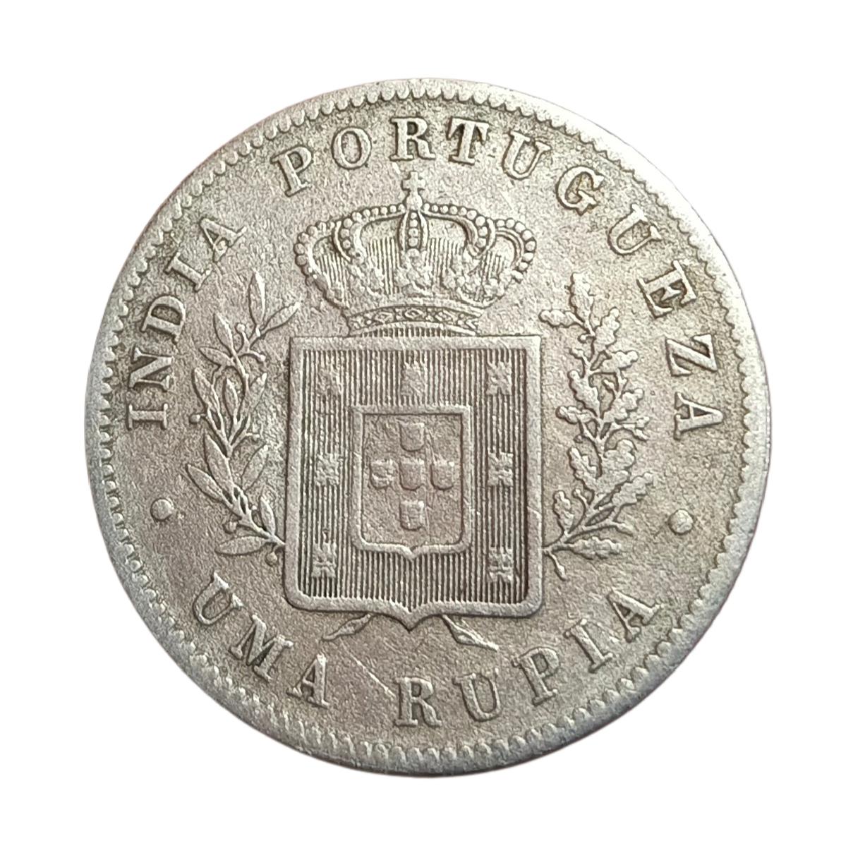 INDO PORTUGUESE Silver UMA RUPIA Year 1882 LUDOVICUS-I **SCARE** Collectable Grade.
