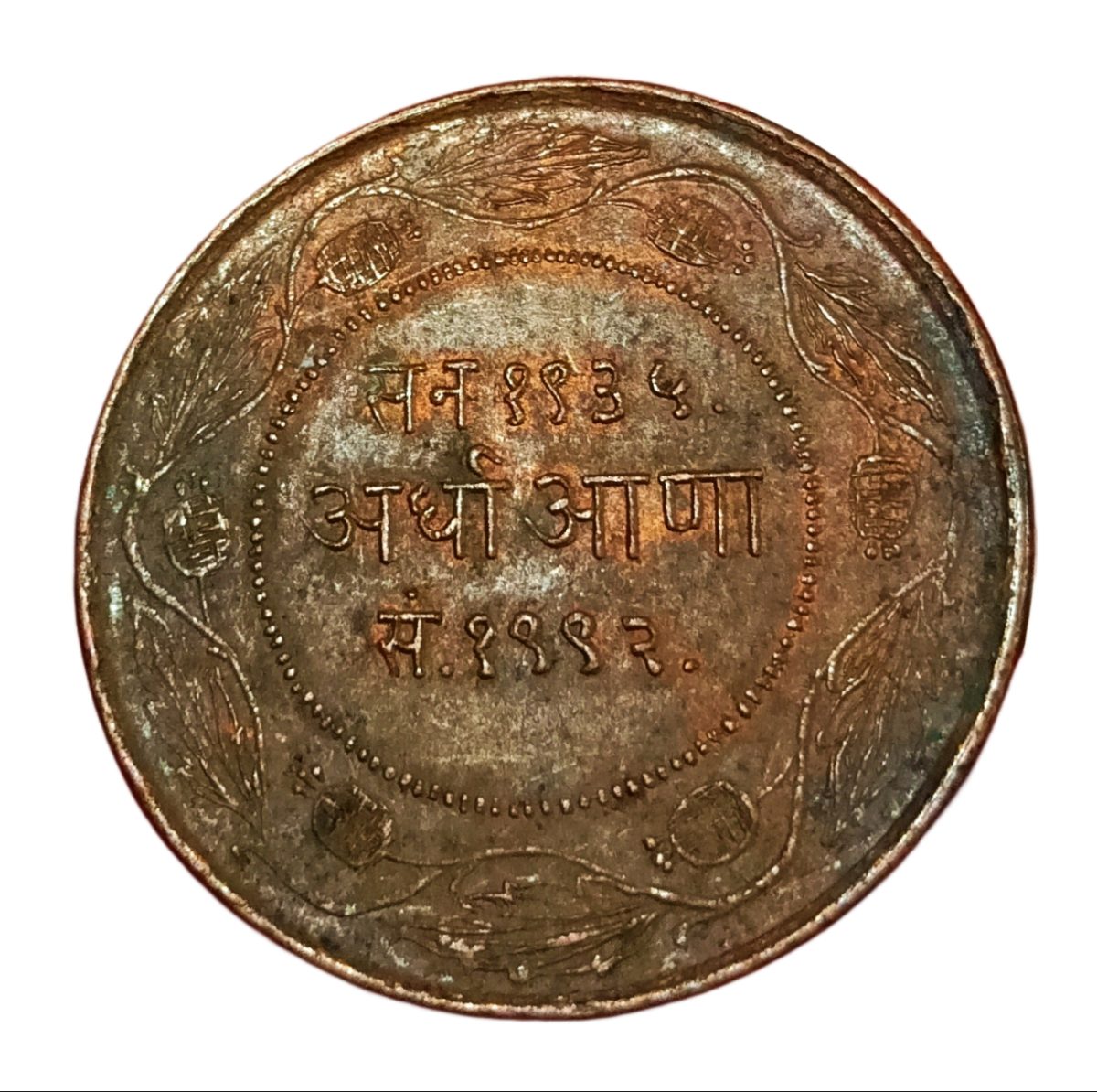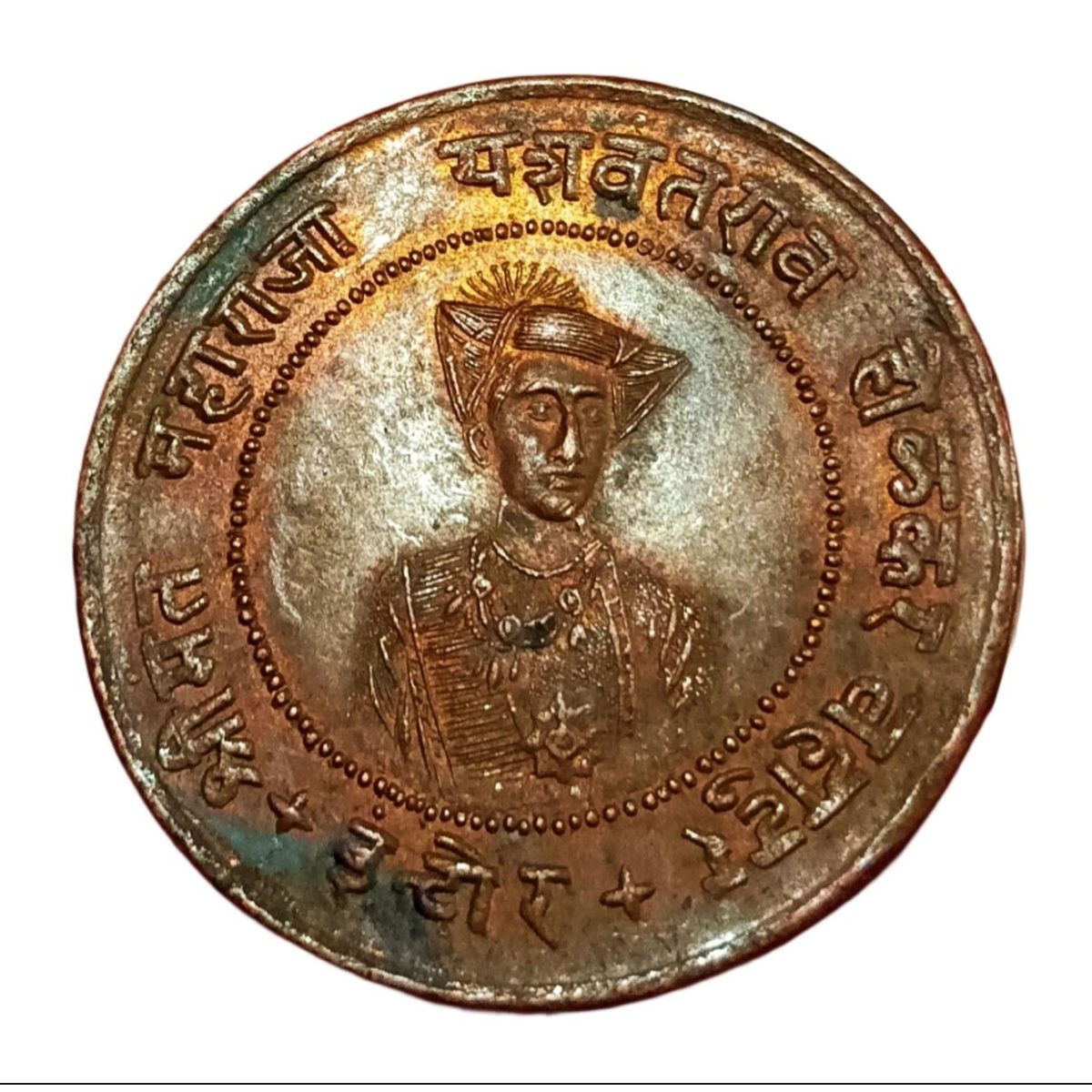 INDORE State HALF ANNA W= 12.6g, D=32.5mm YASHWANT RAO-II Dated BS 1992(1935) **RARE** Top RAW Grade
