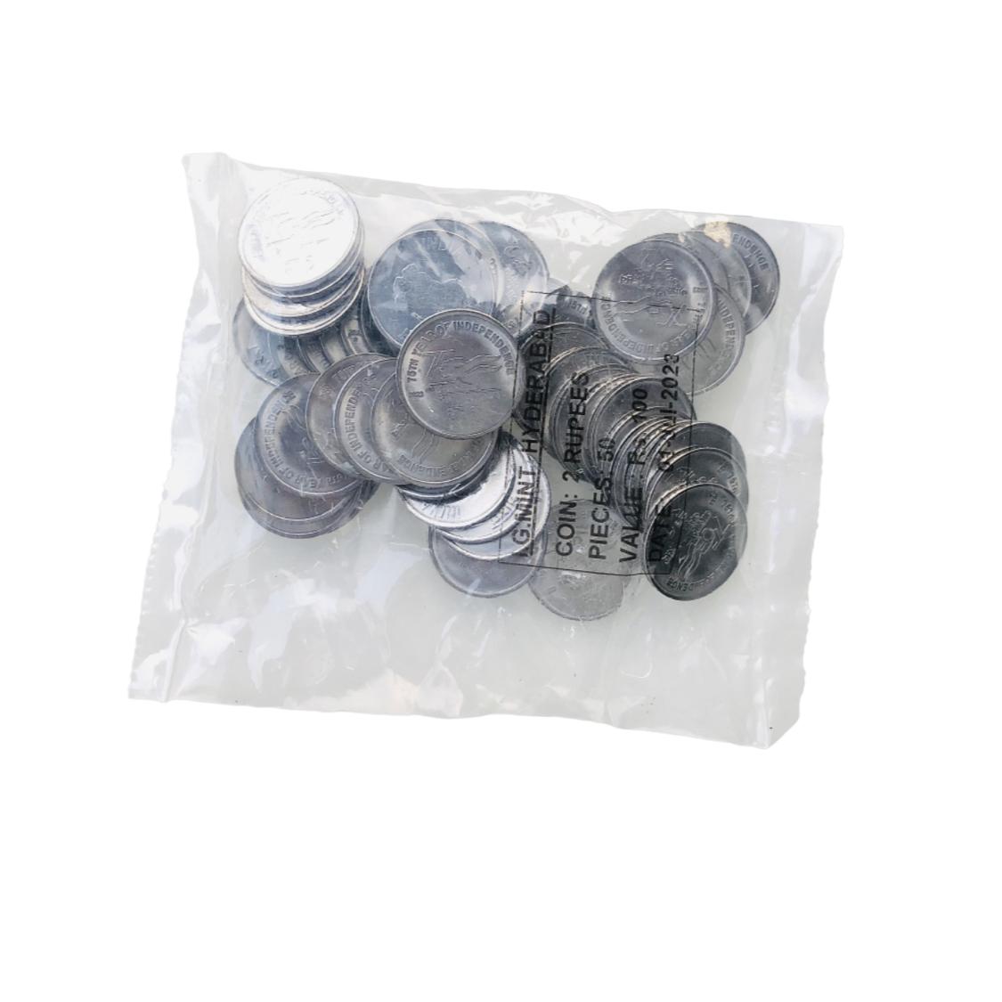 - Latest New 2 Rupees 2023 Hyderabad Mint 50Coin Seal Pouch Famous AKAM Series 75 Year of Independence